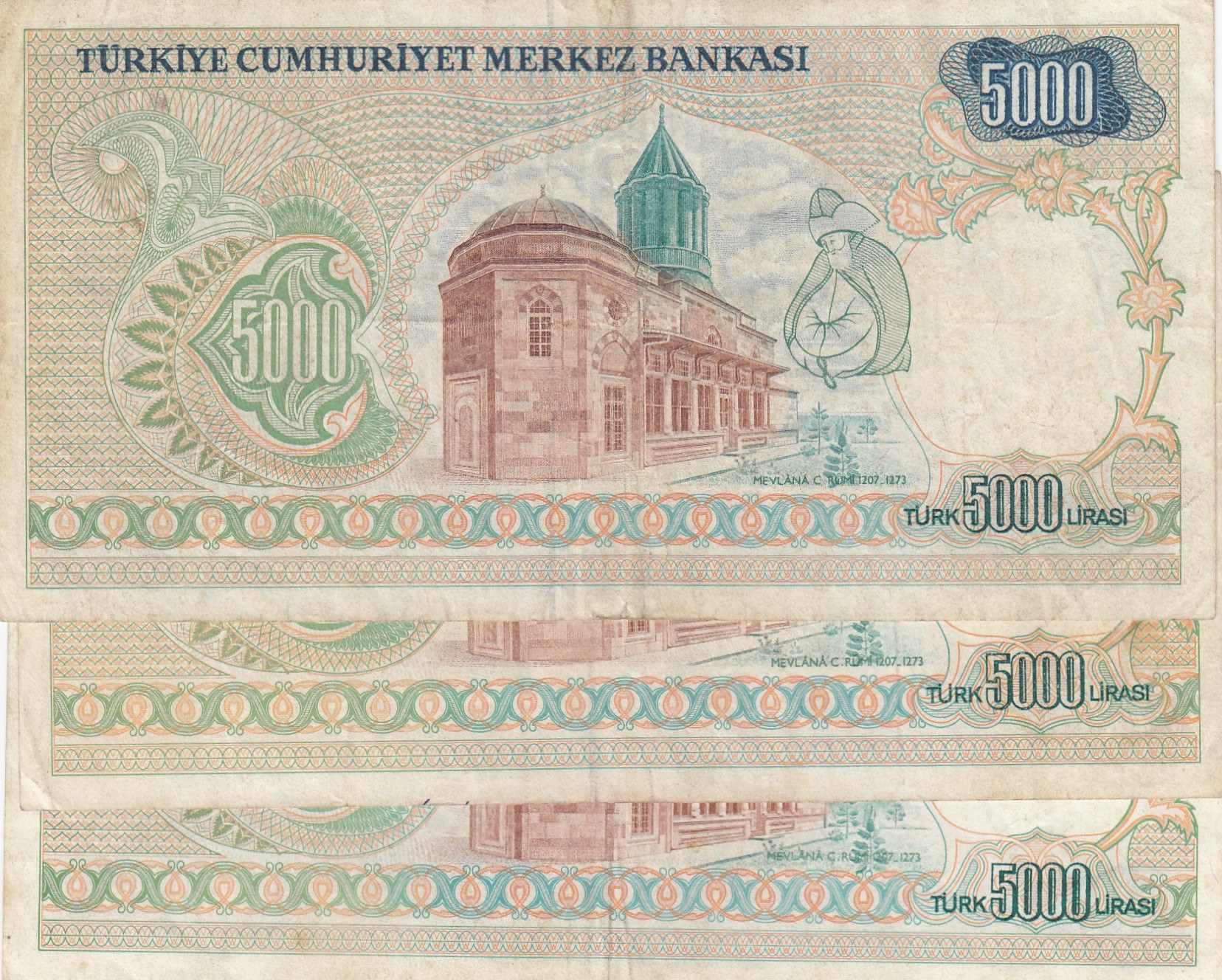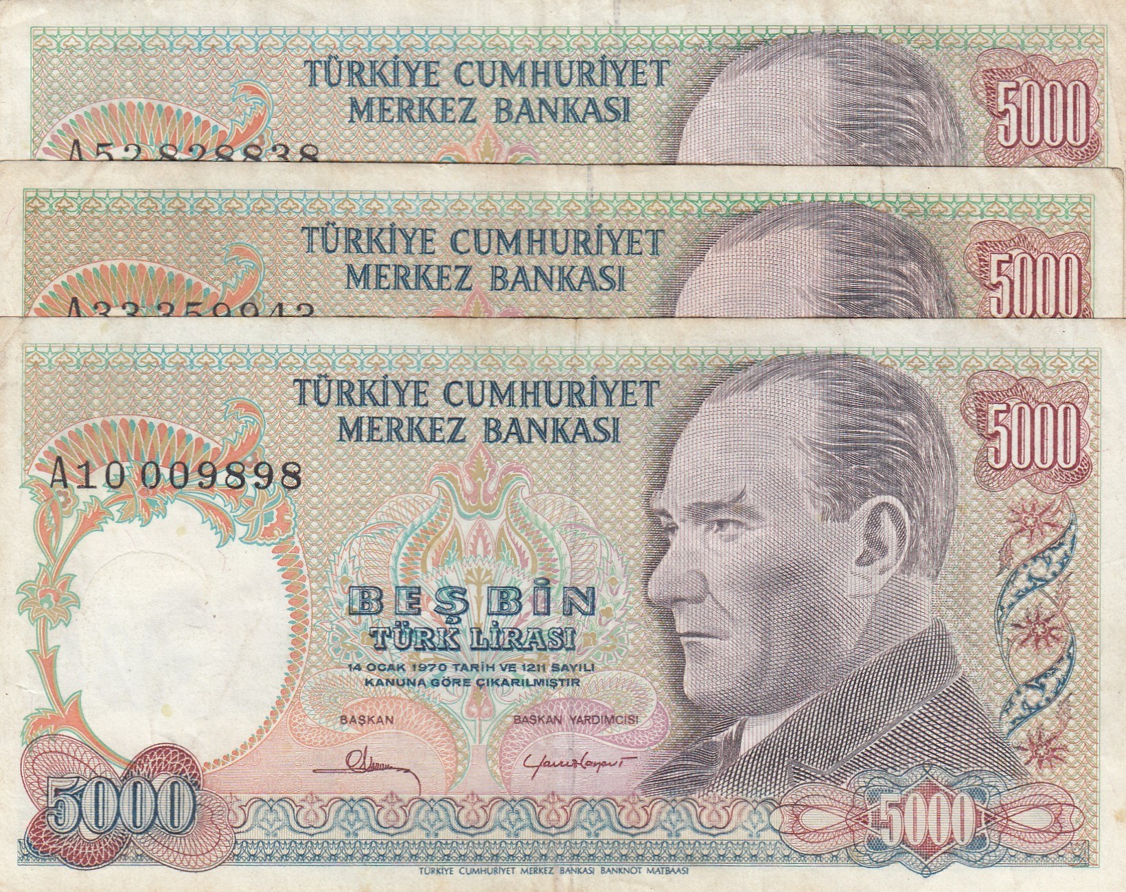 Turkey, 5.000 Lira, 1981, VF /XF, 7/1. Emission, p196A, (Total 3 banknotes)