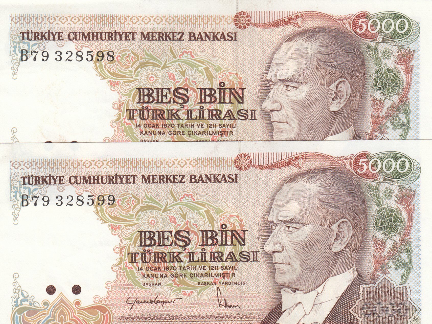 Atatürk portrait, serial numbers. B79 328598-9