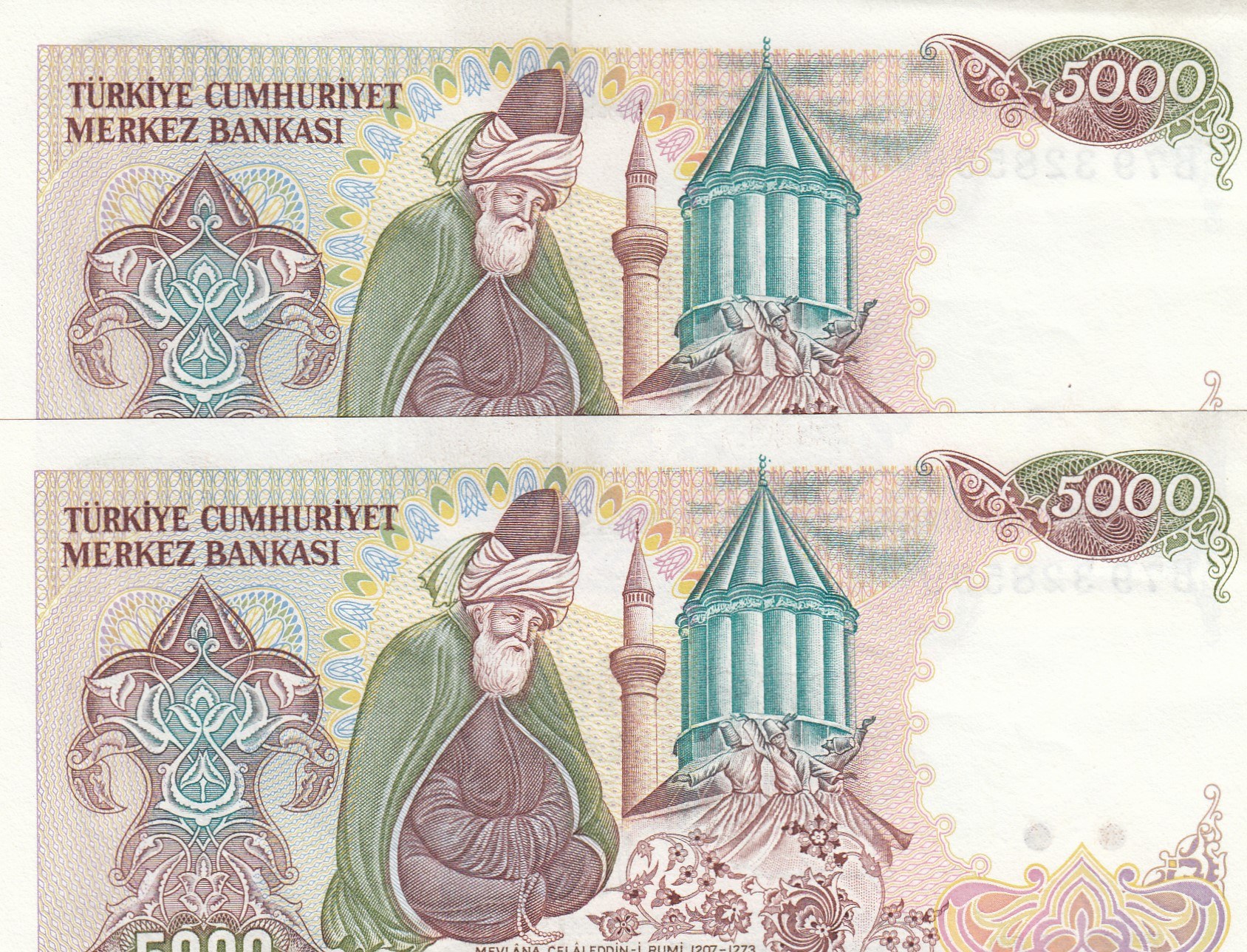 Turkey, 5.000 Lira, 1985, UNC, 7/2. Emission, p17, (Total 2 consecutive banknotes)