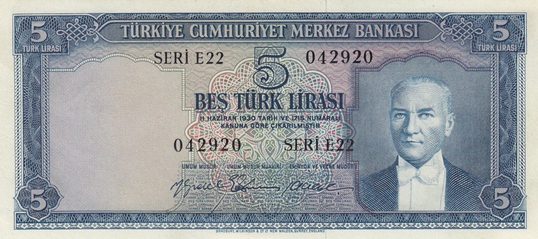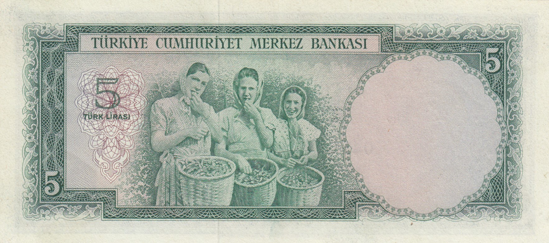 Turkey, 5 Lira, 1959, AUNC, 5/2. Emission, p155