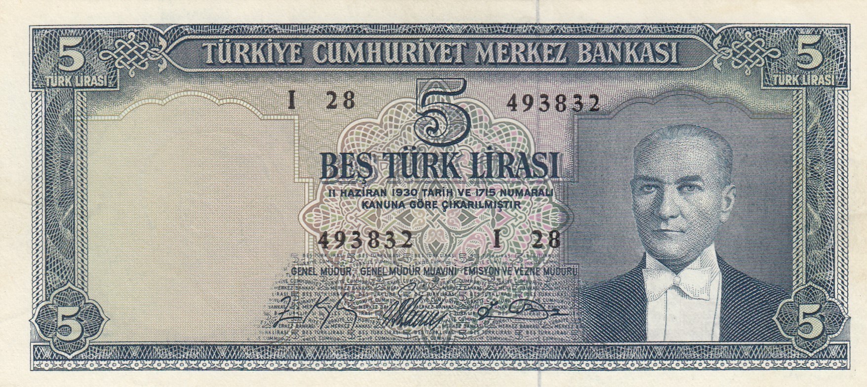 Turkey, 5 Lira, 1965, AUNC, 5/4. Emission, p174