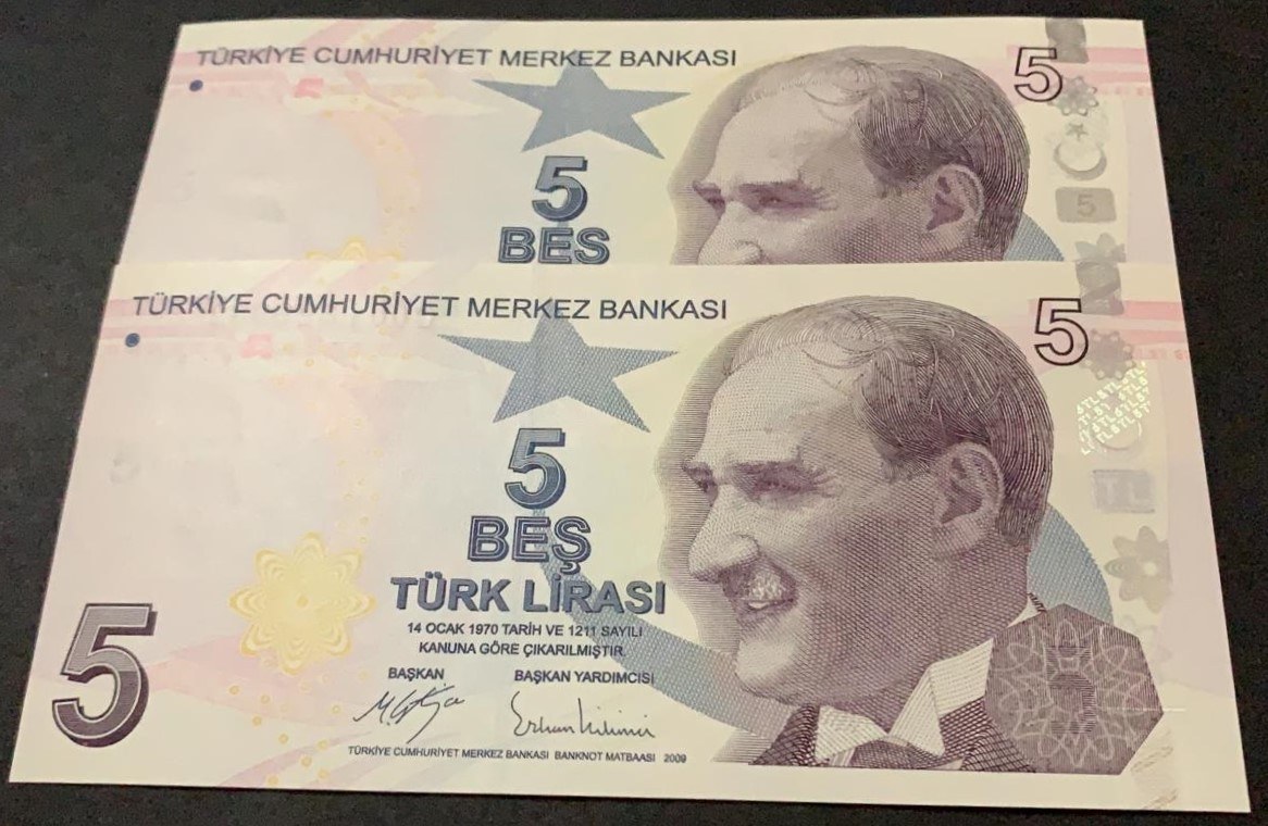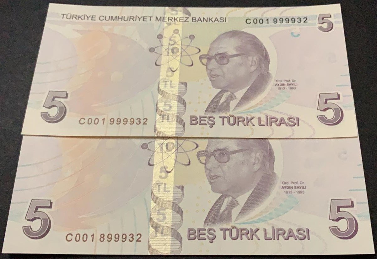 Turkey, 5 Lira, 2017, UNC, 9/3. Emission, p222c, "C001" first prefix and nice numbers, (Total 2 banknotes)
