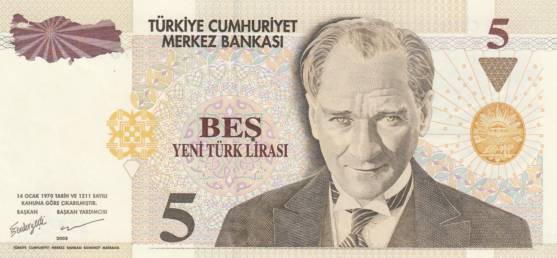 Turkey, 5 New Turkish Lira, 2005, UNC, 8/1. Emission, p217, RADAR