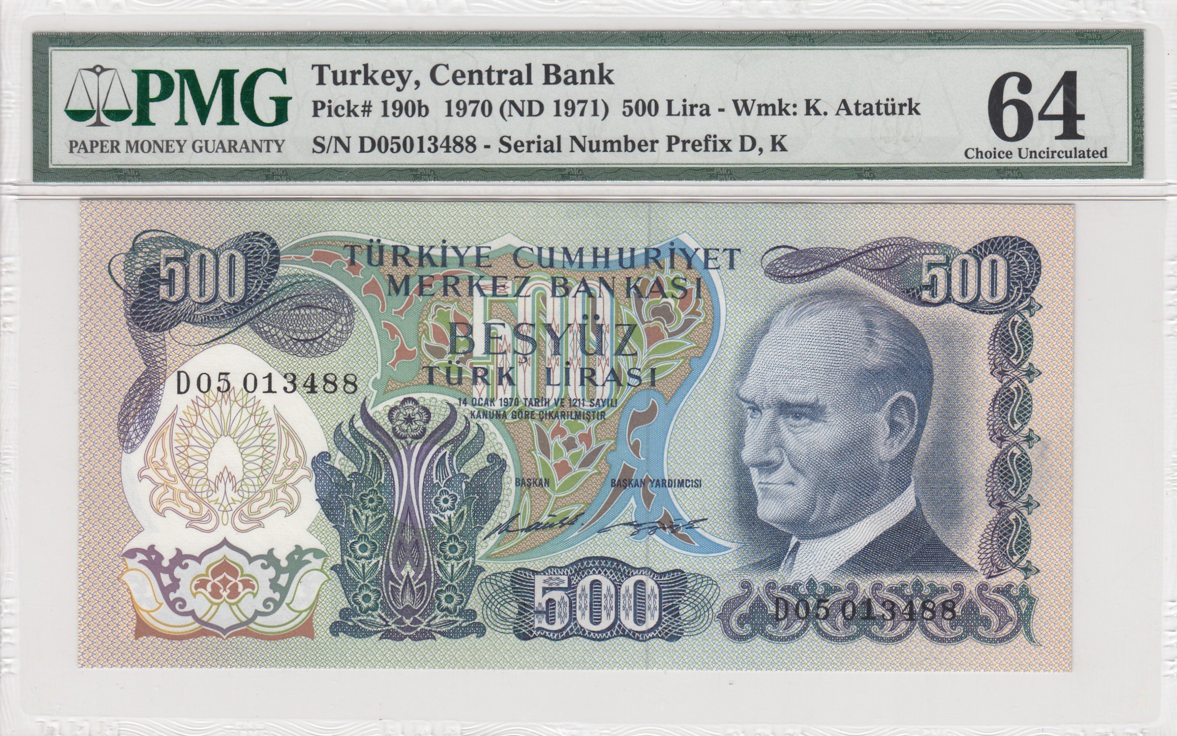 PMG 64, Atatürk portrait, serial number: D05 013488