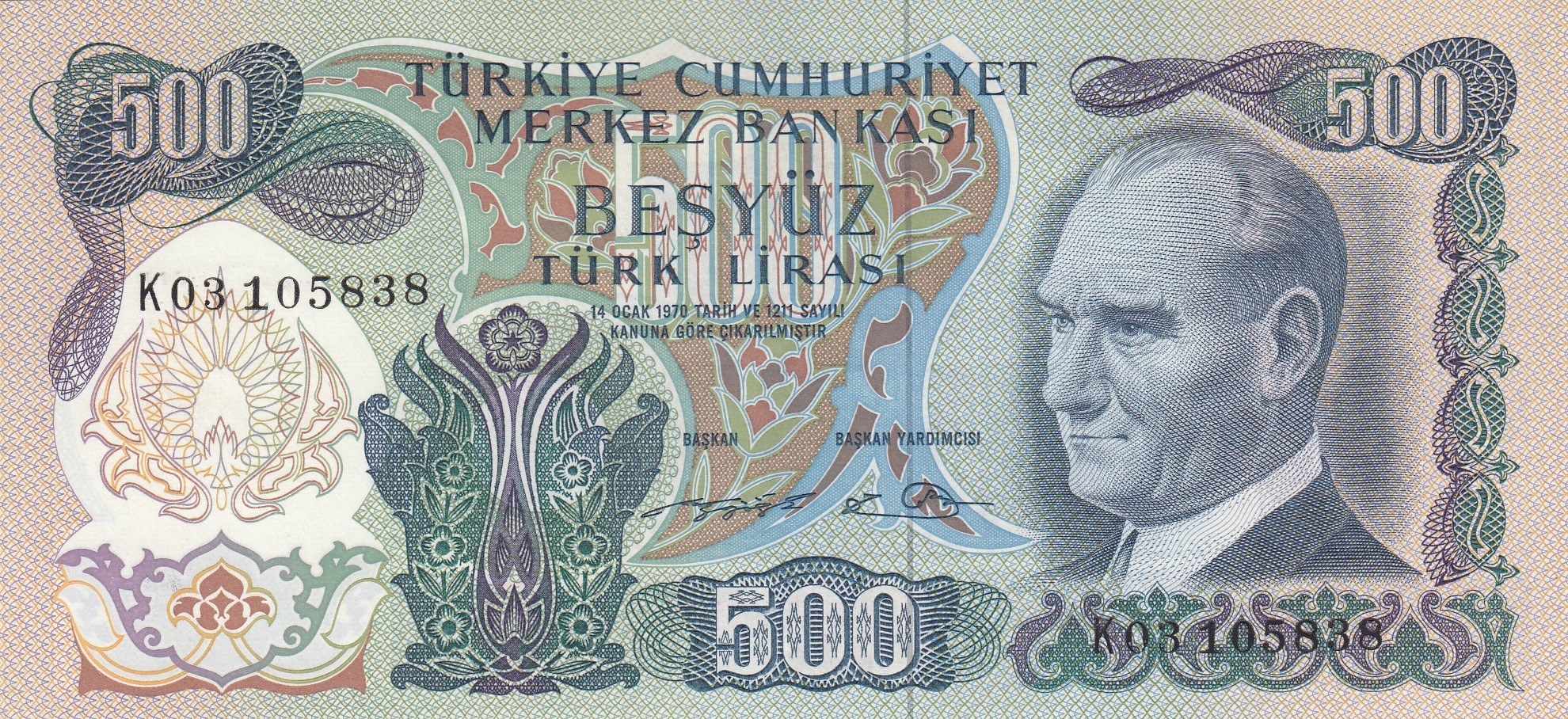 Atatürk portrait, serial number: K03 105838