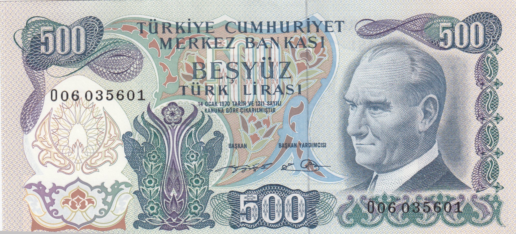 Turkey, 500 Lira, 1974, UNC, 6/2. Emission, p190e