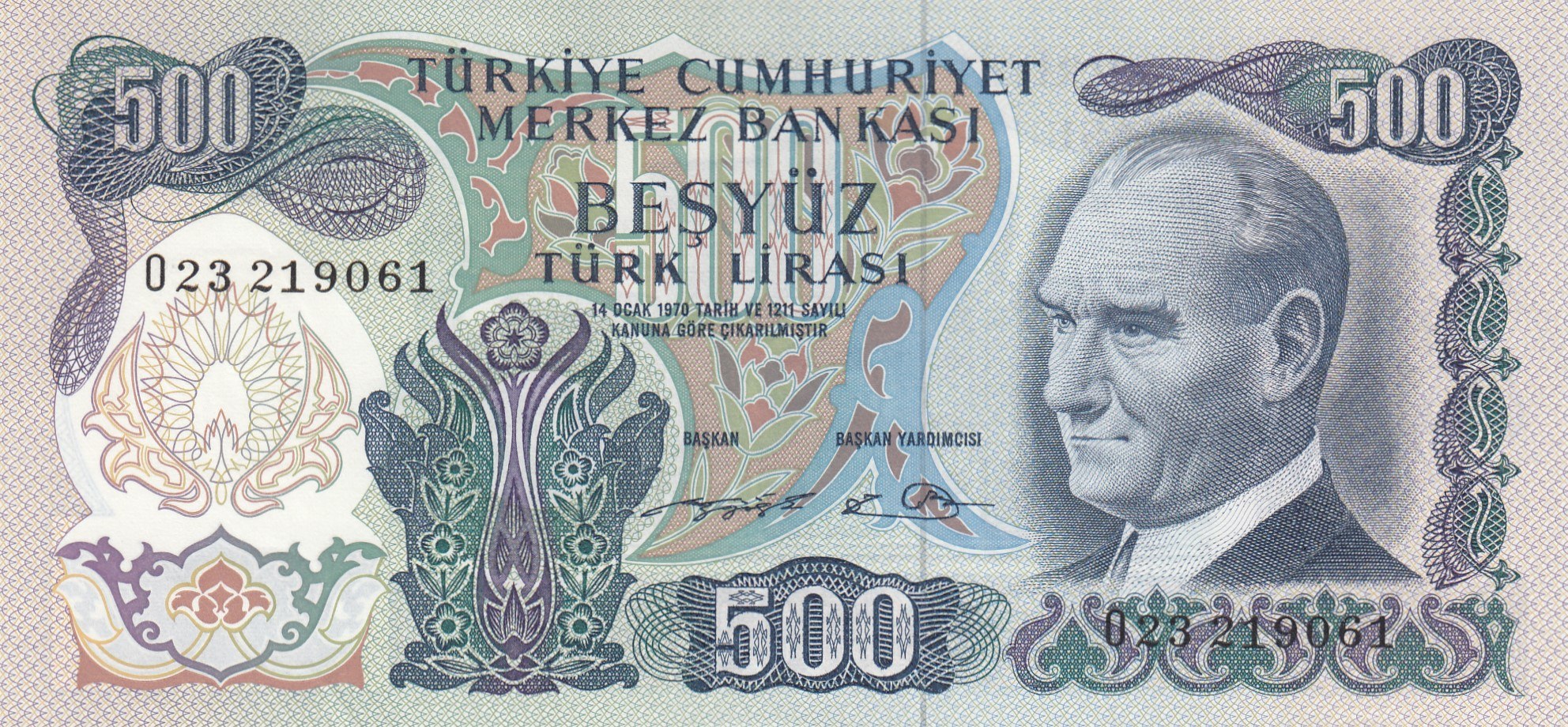 Turkey, 500 Lira, 1974, UNC, 6/2. Emission, p190e