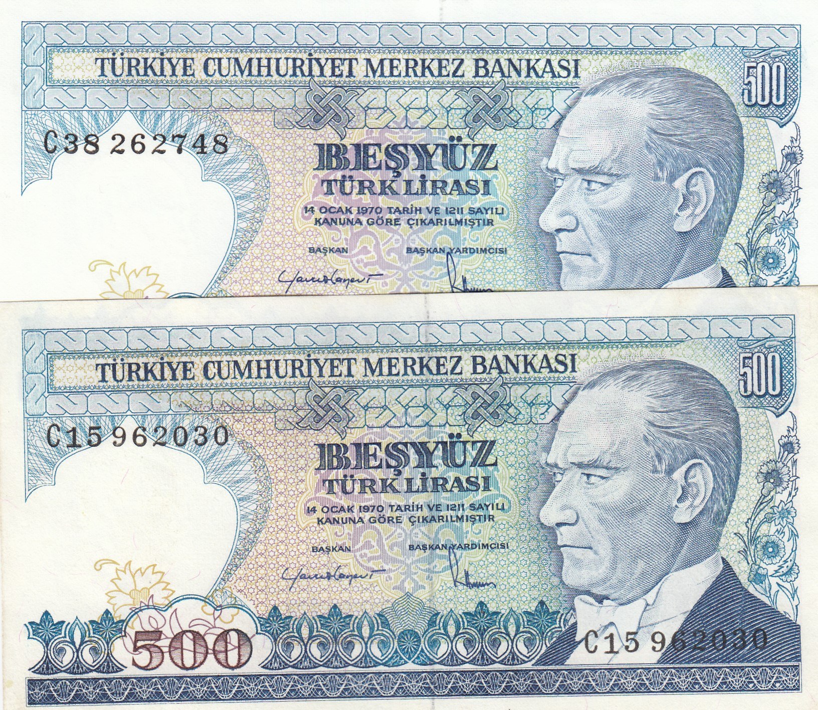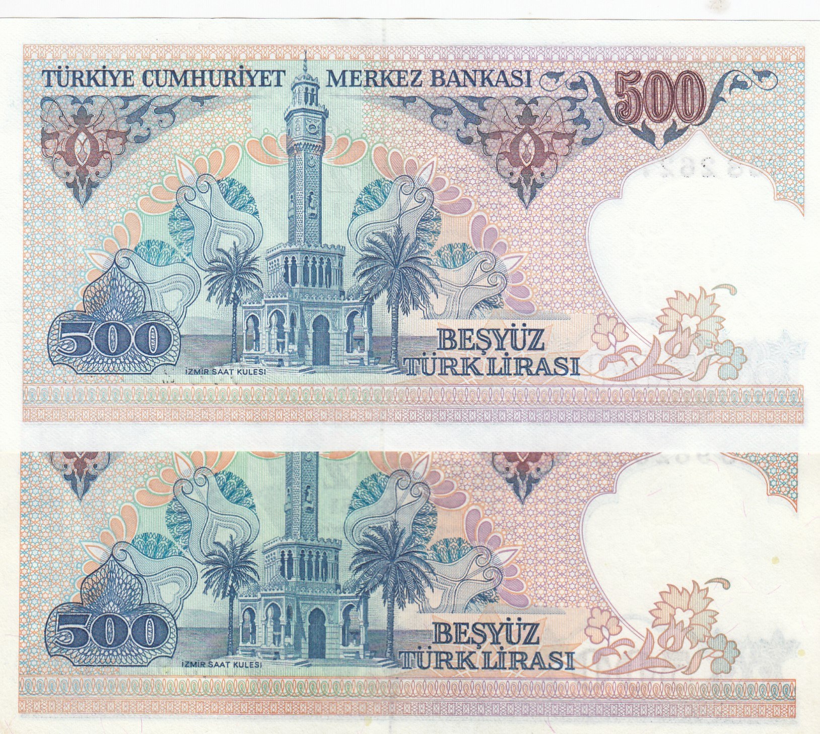 Turkey, 500 Lira, 1984, UNC, 7/2. Emission, p195, DIFFERENT WATERMARK, (Total 2 banknotes)