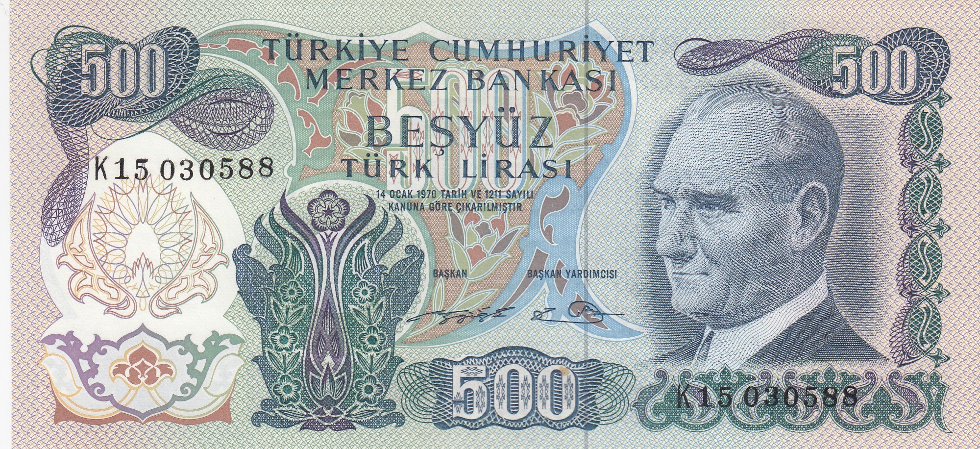 Turkey, 500 Lirai 1974, UNC, 6/2. Emission, p190b, "K15"
