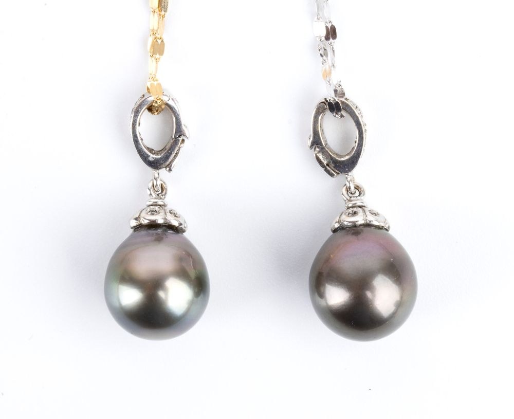 18k yellow and white gold, each with a pendant Tahitian pearl surmounted by diamond.