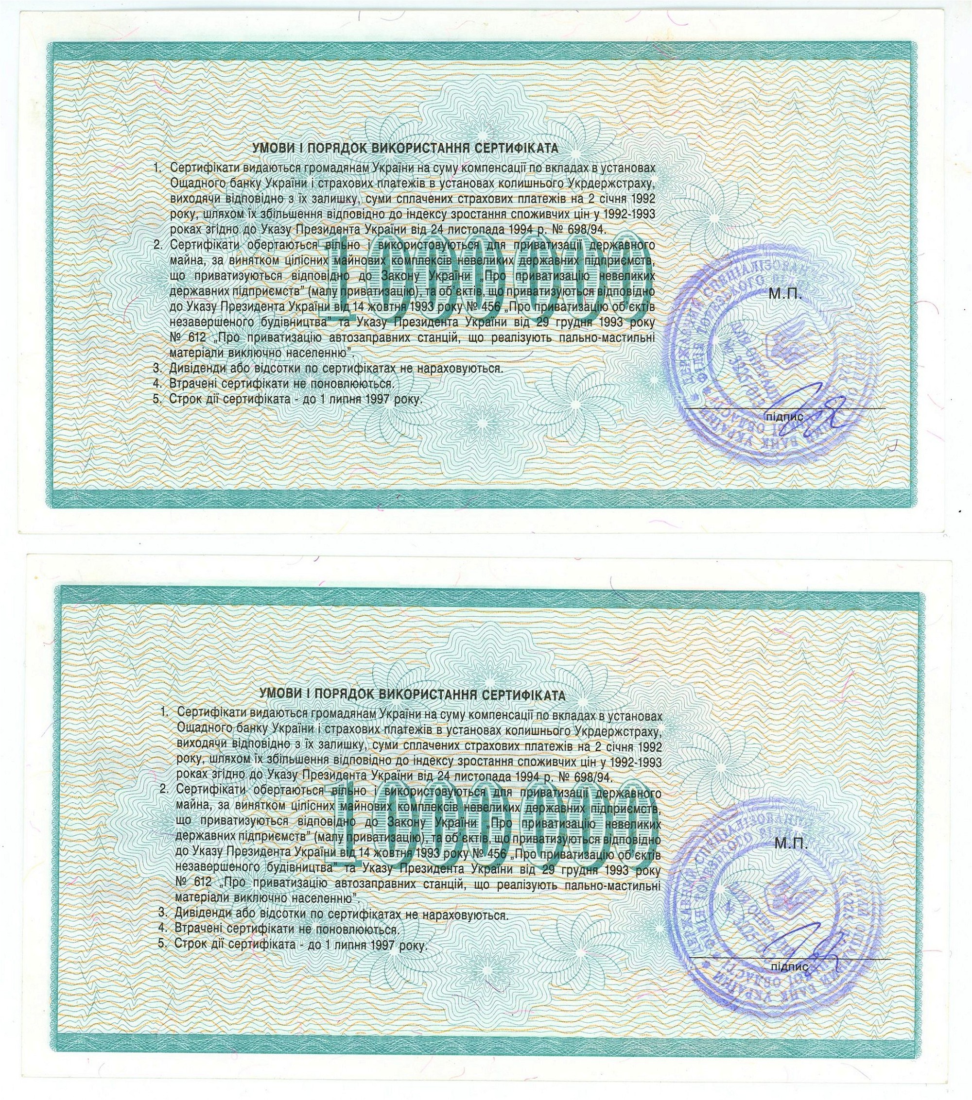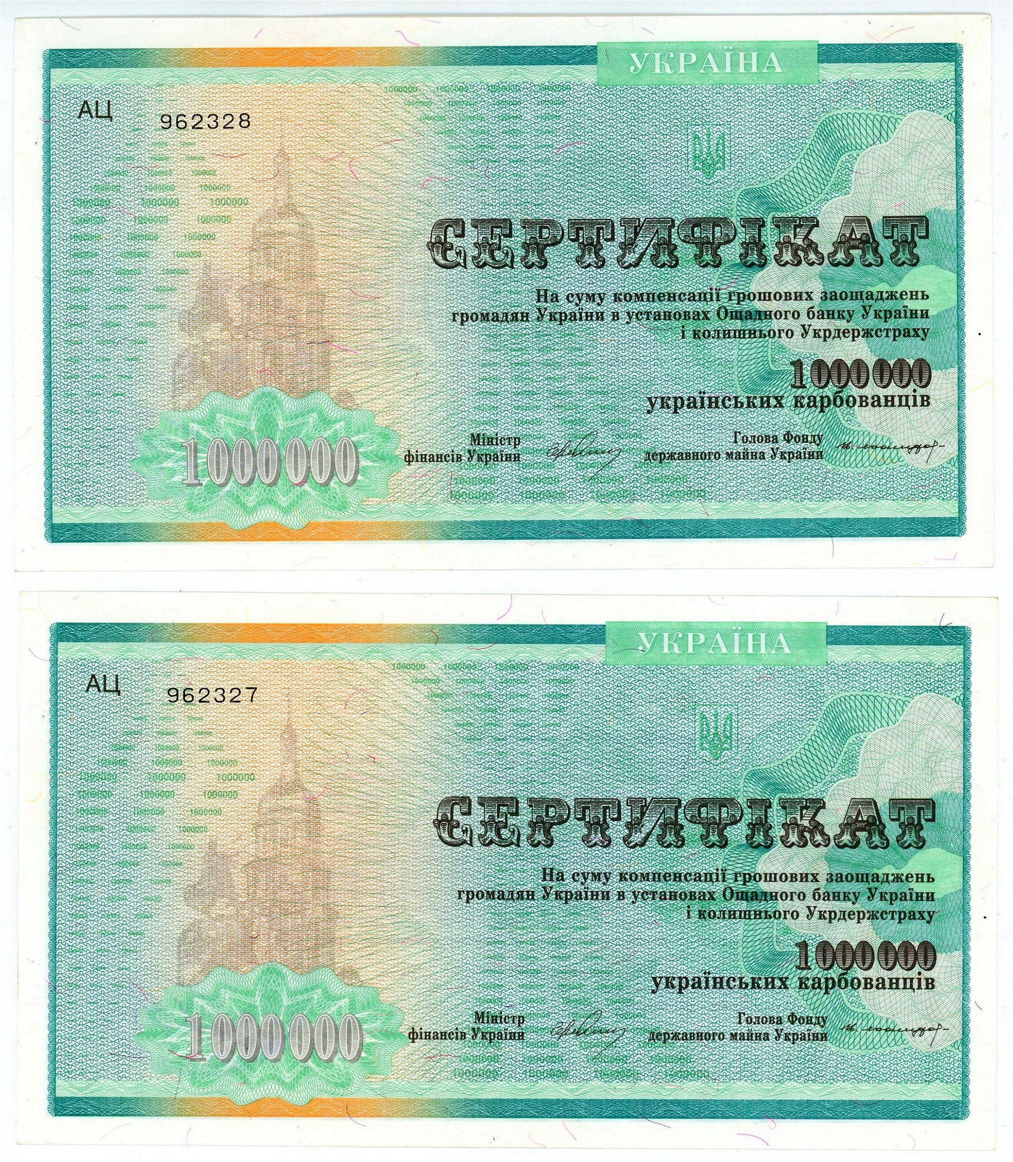 Ukraine 2 x 1000000 Karbovantsiv 1992 With Consecutive Numbers
