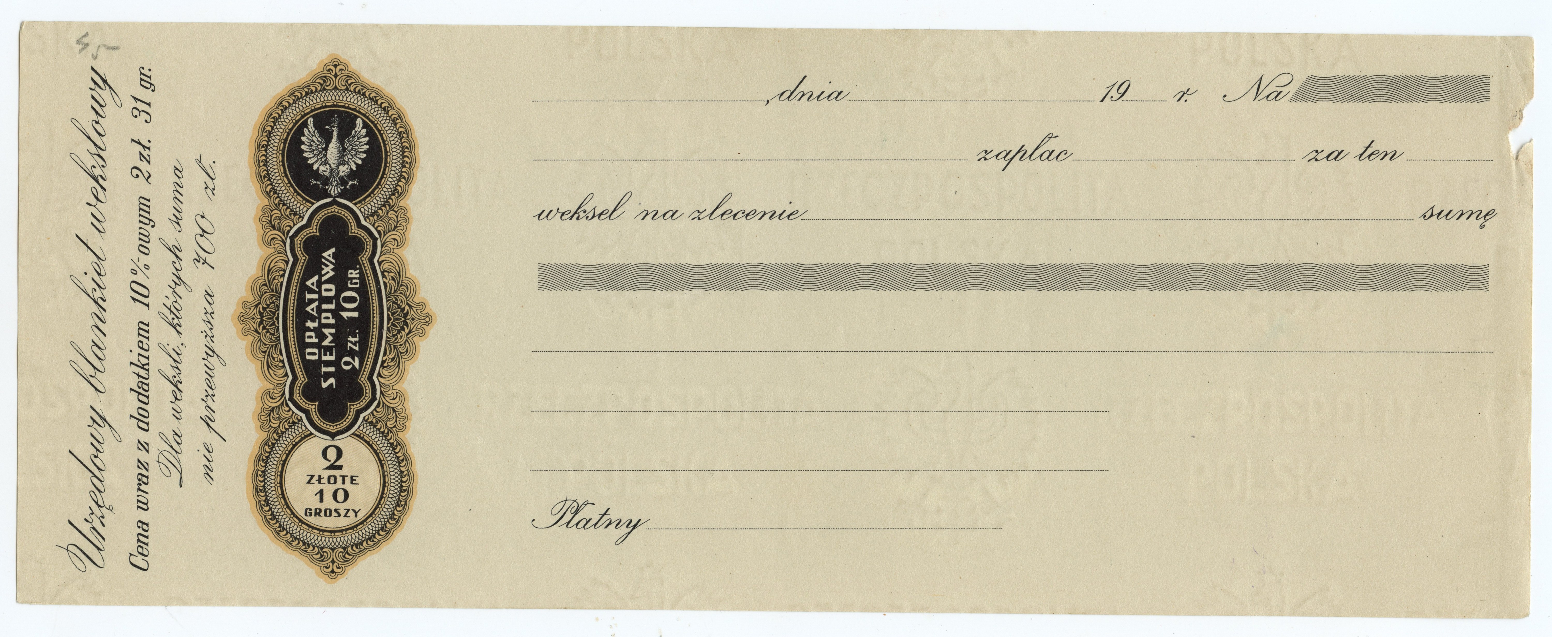 To jest urzędowy blankiet wekslowy z Polski. Weksle to dokumenty finansowe służące jako zobowiązanie do zapłaty określonej sumy pieniędzy w ustalonym terminie.