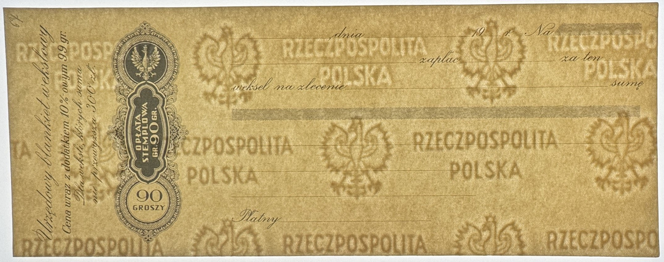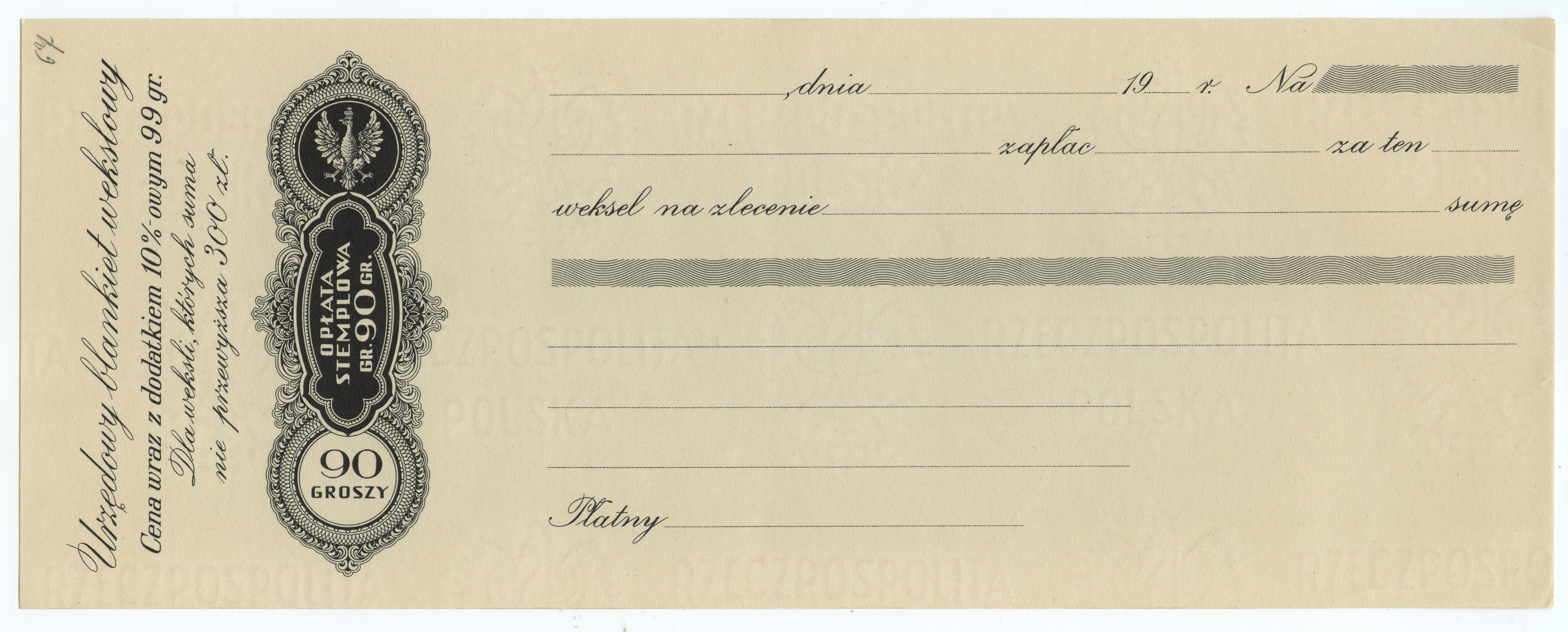 To jest urzędowy blankiet wekslowy z Polski. Weksle to dokumenty finansowe służące jako zobowiązanie do zapłaty określonej sumy pieniędzy w ustalonym terminie.