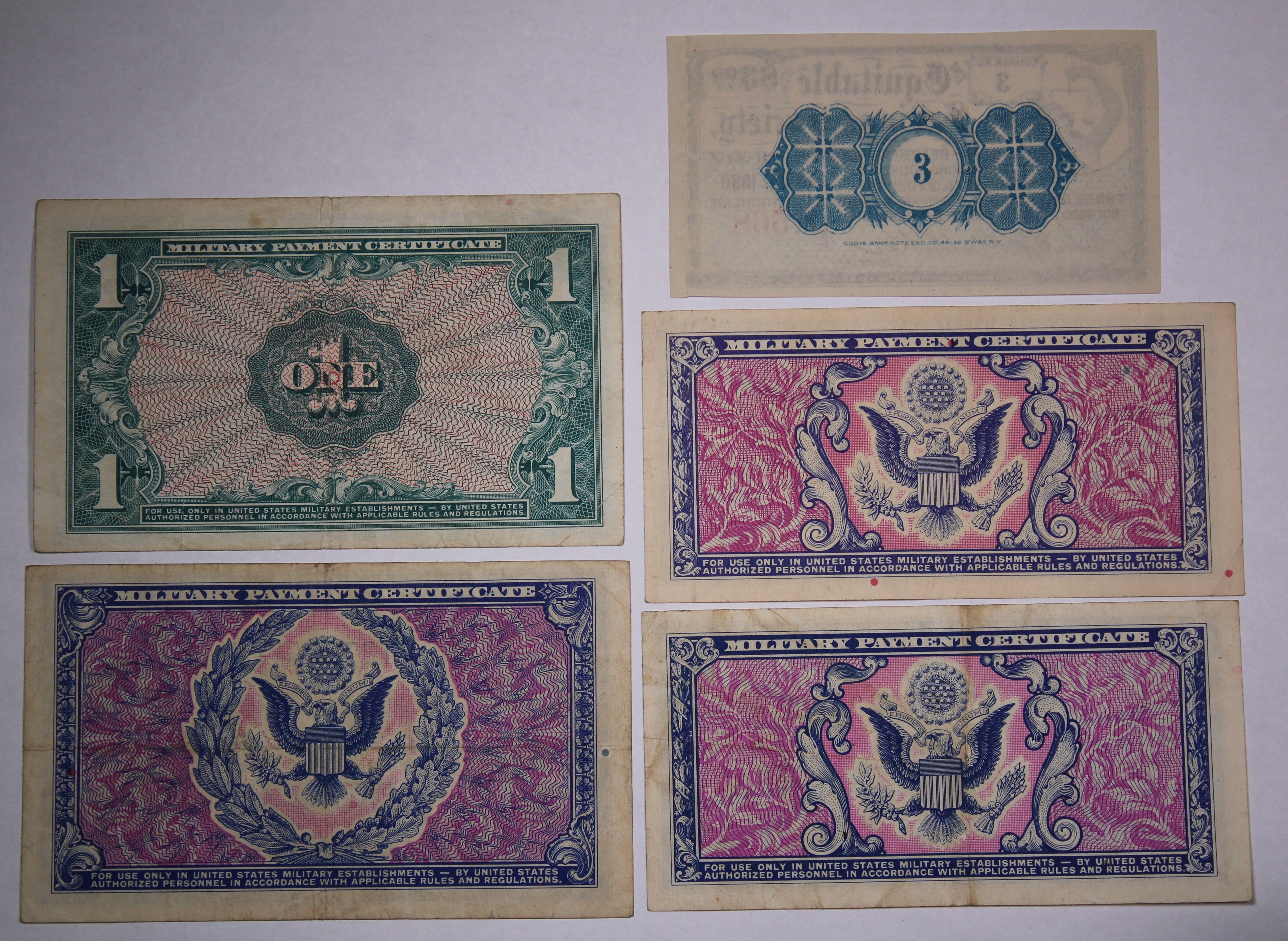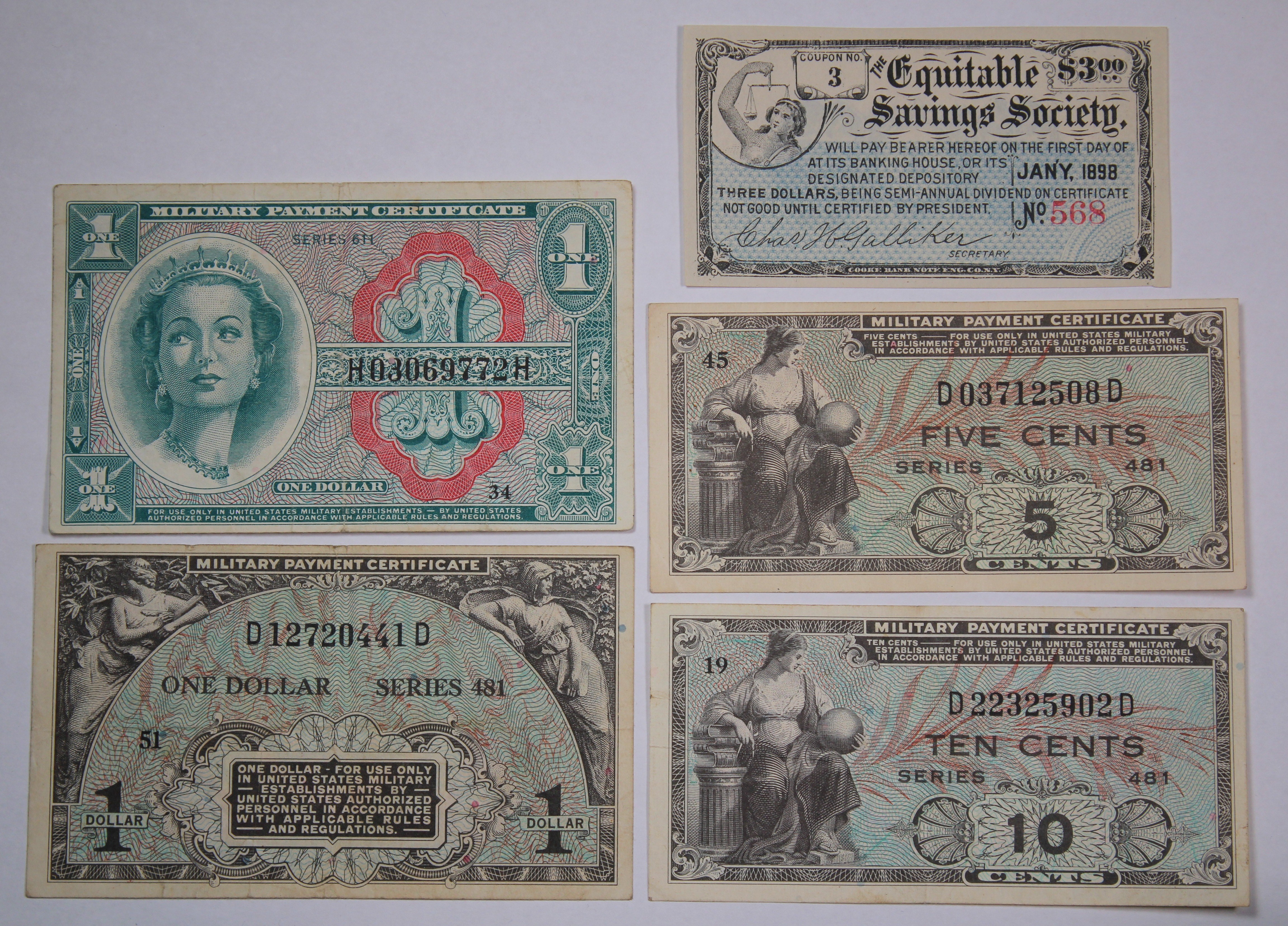 USA 1 Dollar 10 Cents 5 Cents & 3 Dollars 1898 Coupon (Lot of 5 Banknotes)