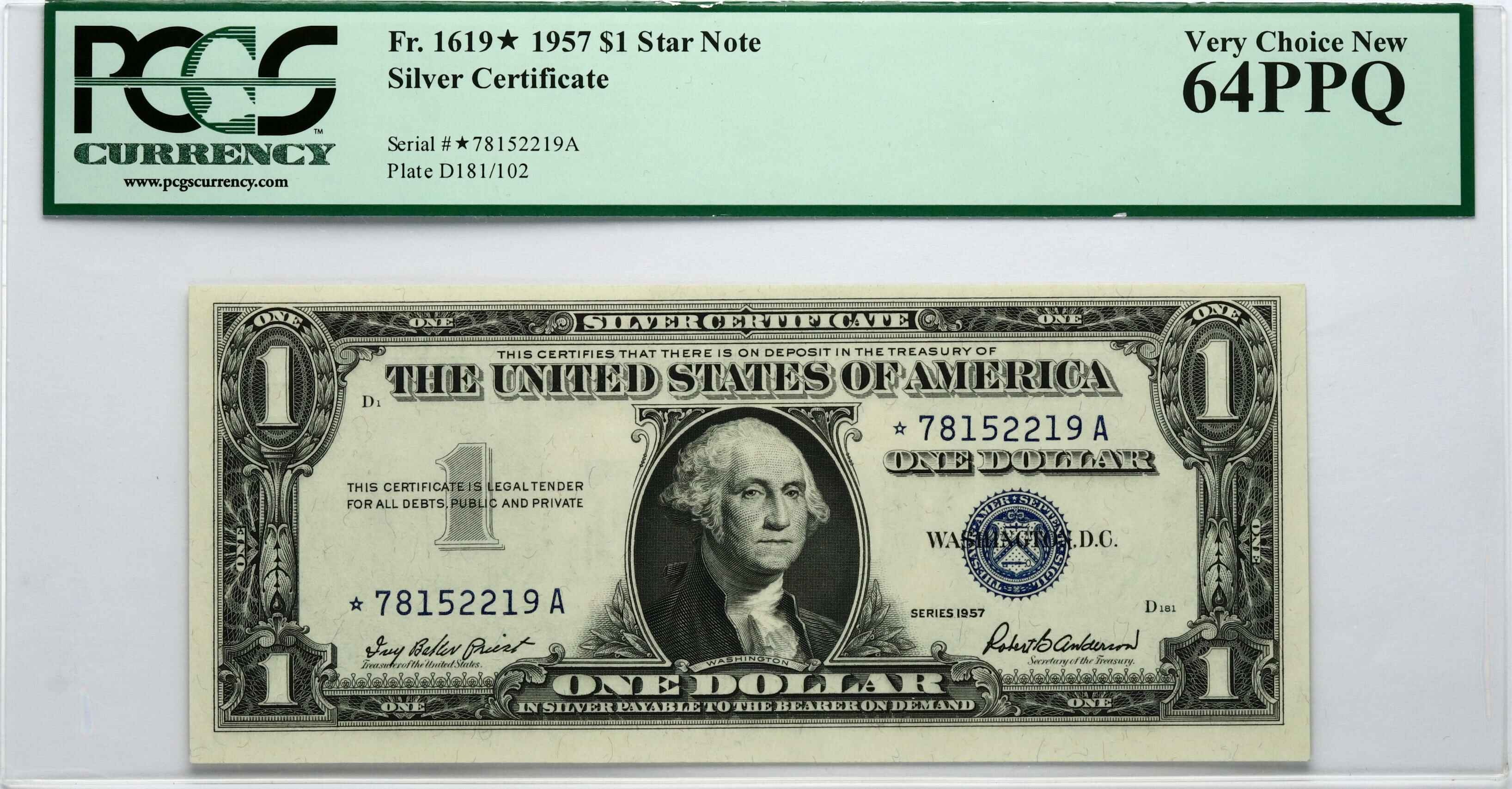 USA. 1 Dollar 1957. Silver Certificate. S/N ★78152219A. Pick-419, Fr.1619 ★. PCGS Very Choice New 64 PPQ