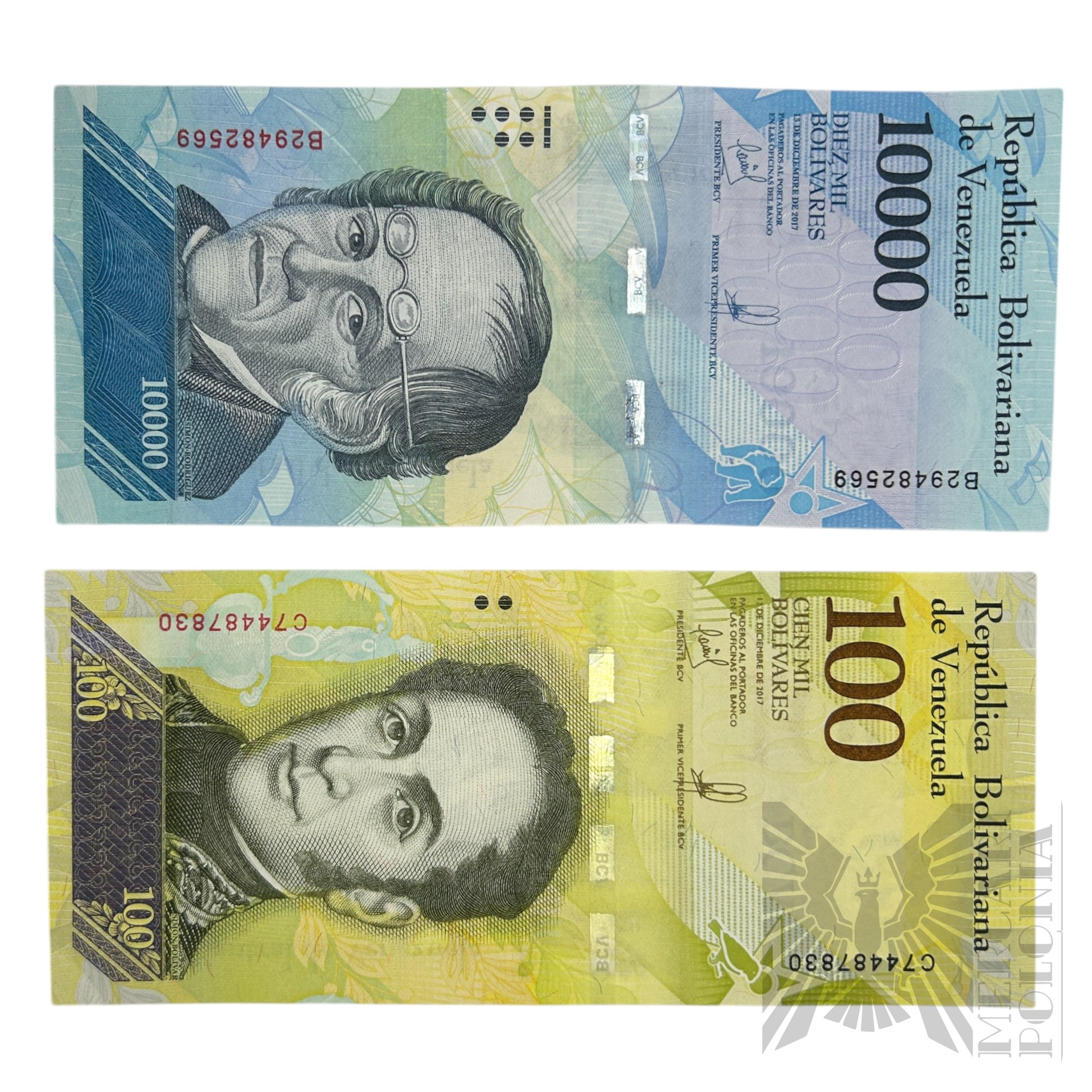 Wenezuela - Dwa Banknoty 100 i 10 000 Boliwarów