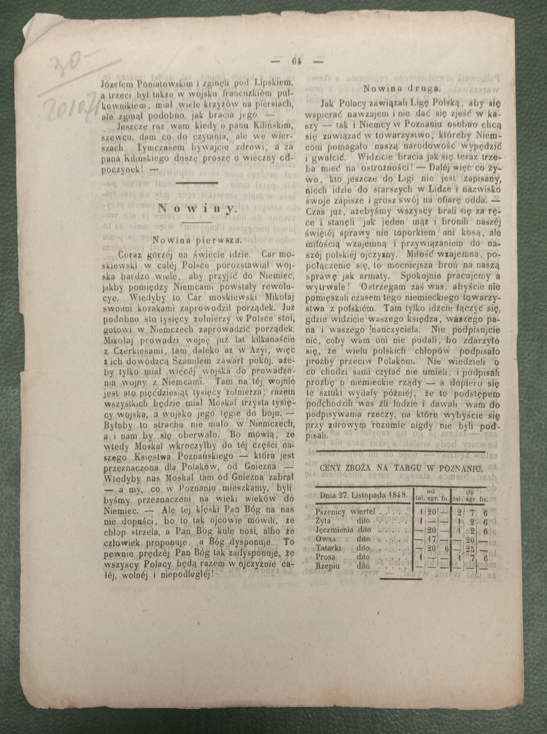 Czasopismo [wychodziło w środy i soboty, w okresie 4.10.1848-29.06.1850], str. 61-64 (ciągła paginacja w roczniku), format 26 x 19 cm.