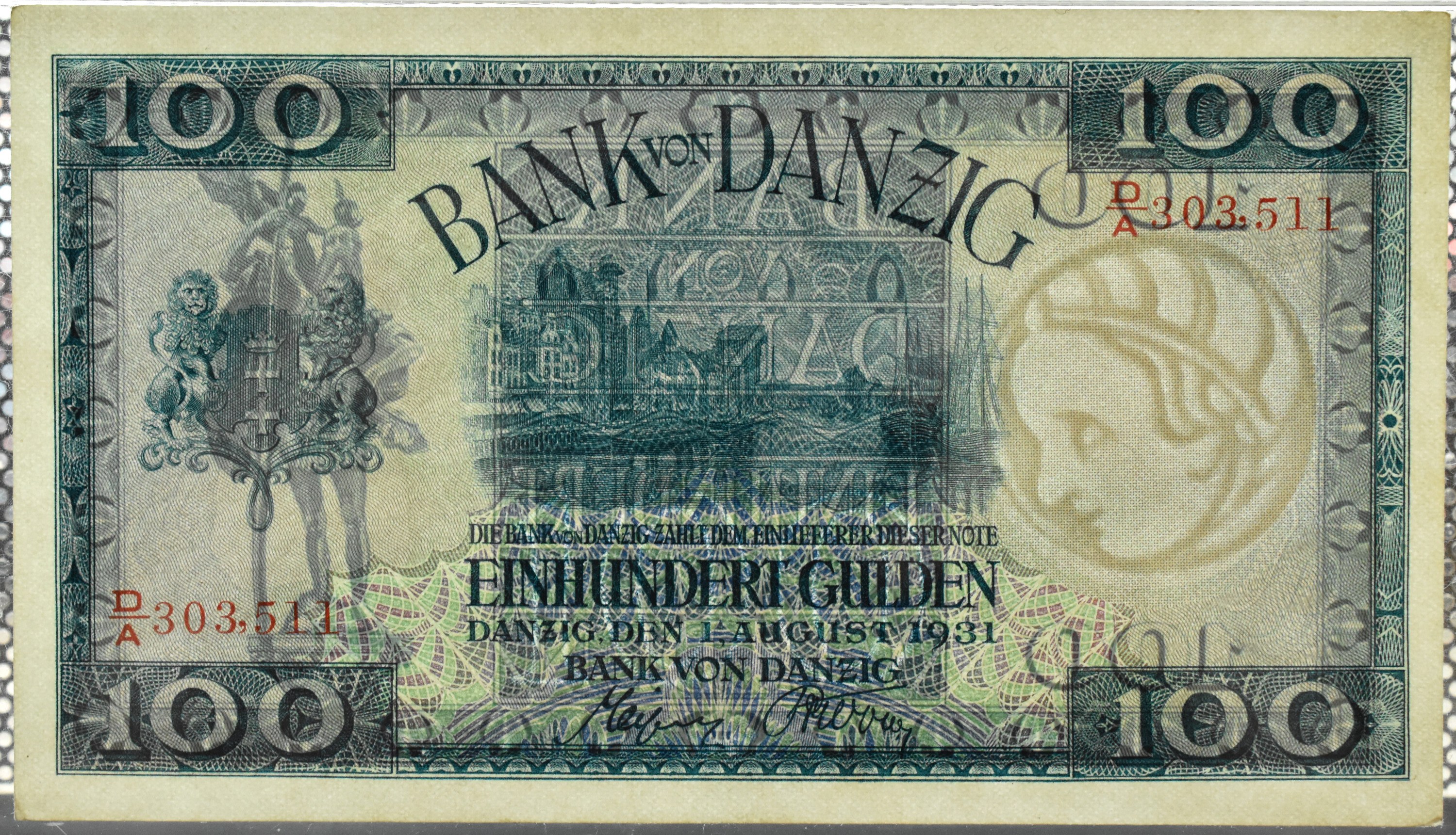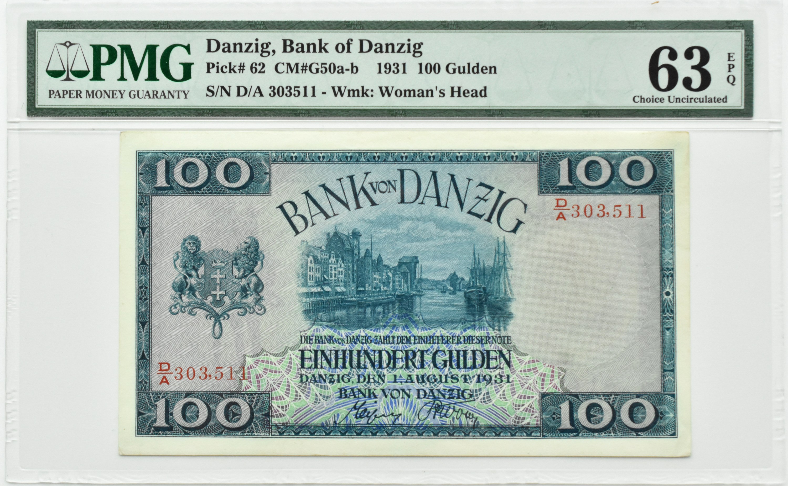 Wolne Miasto Gdańsk, 100 guldenów 1931, Gdańsk, seria D/A, PMG 63 EPQ