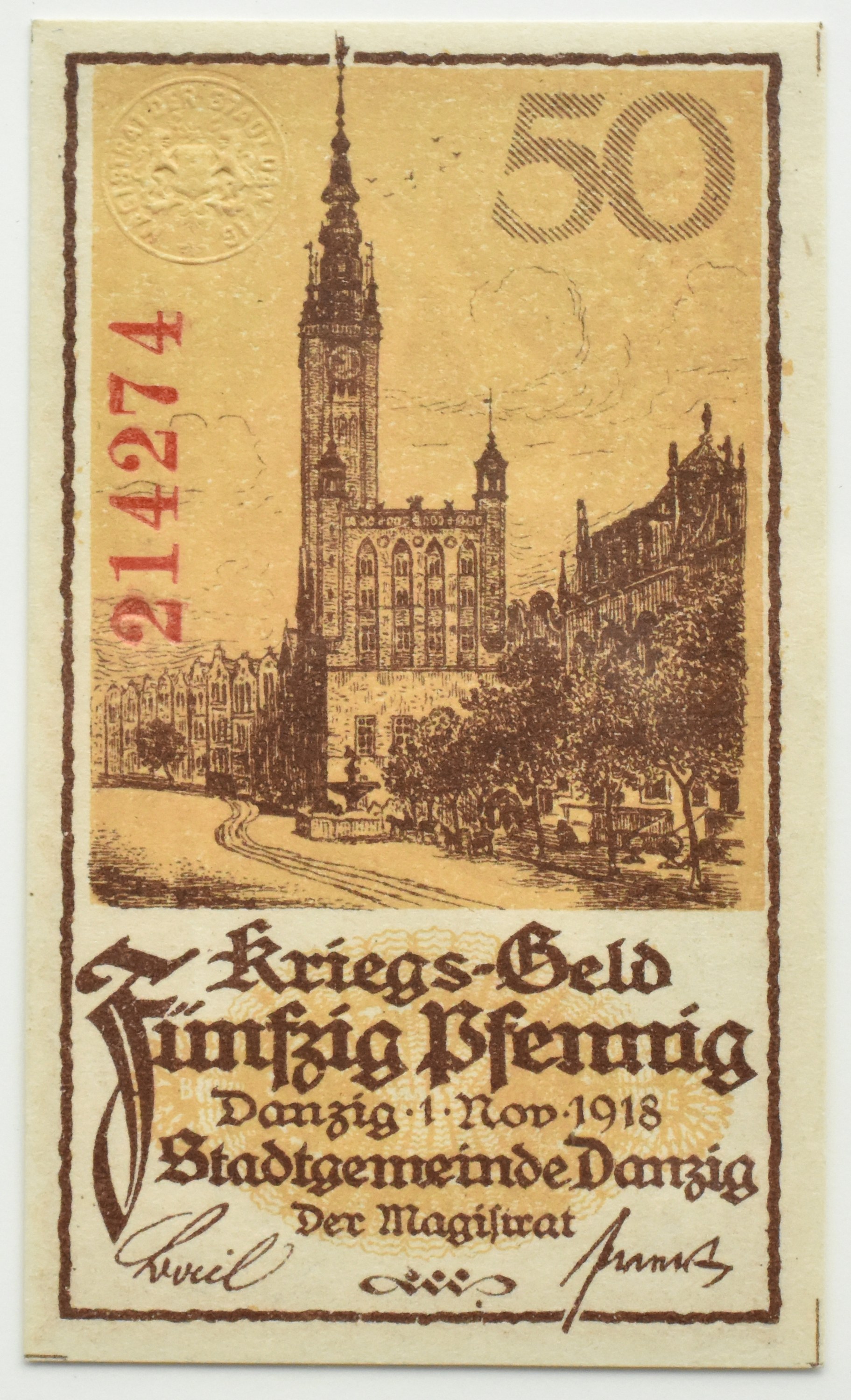 Wolne Miasto Gdańsk, 50 fenigów 1918, Gdańsk, PMG 66 EPQ