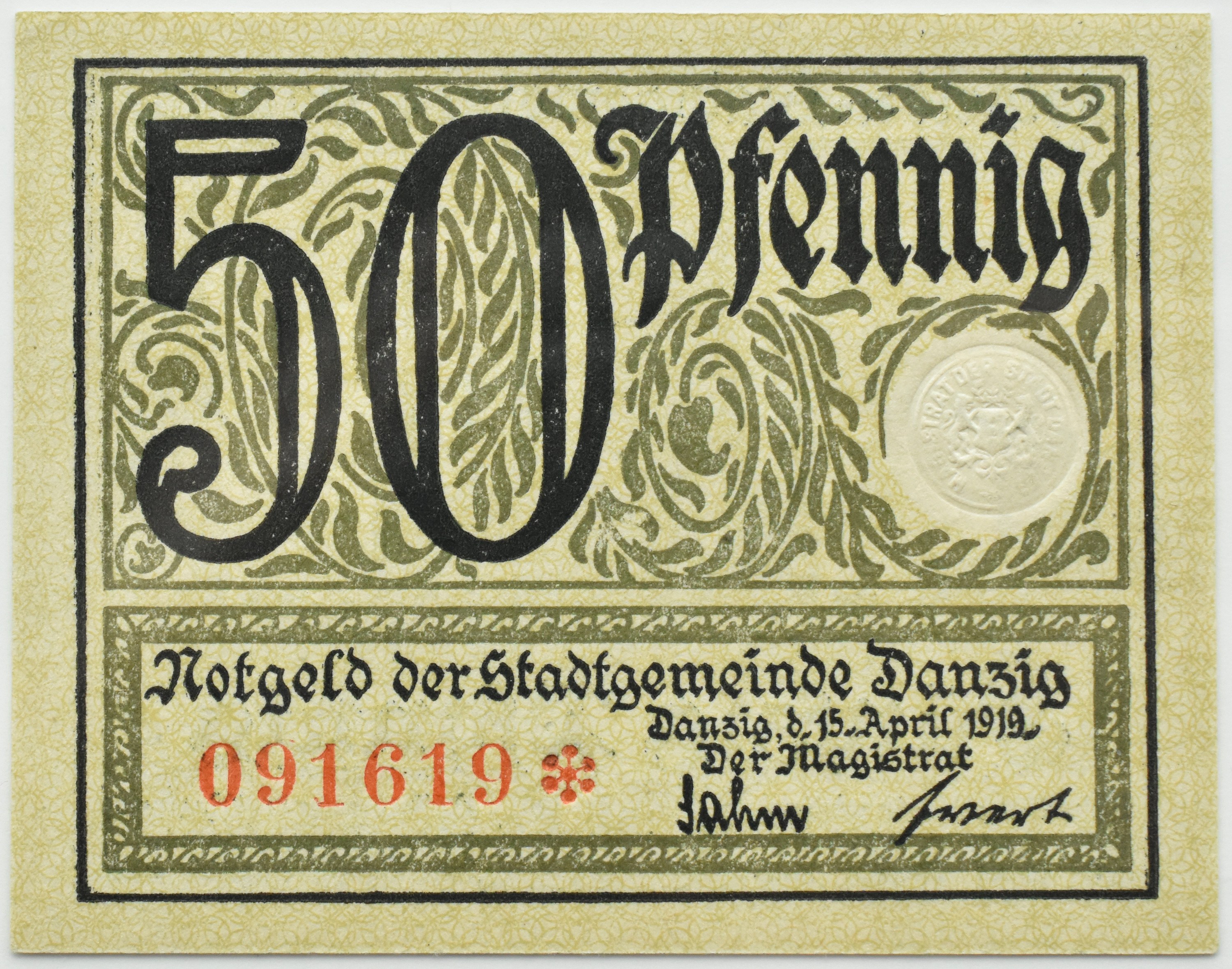Wolne Miasto Gdańsk, 50 fenigów 1919, Gdańsk, PMG 66 EPQ