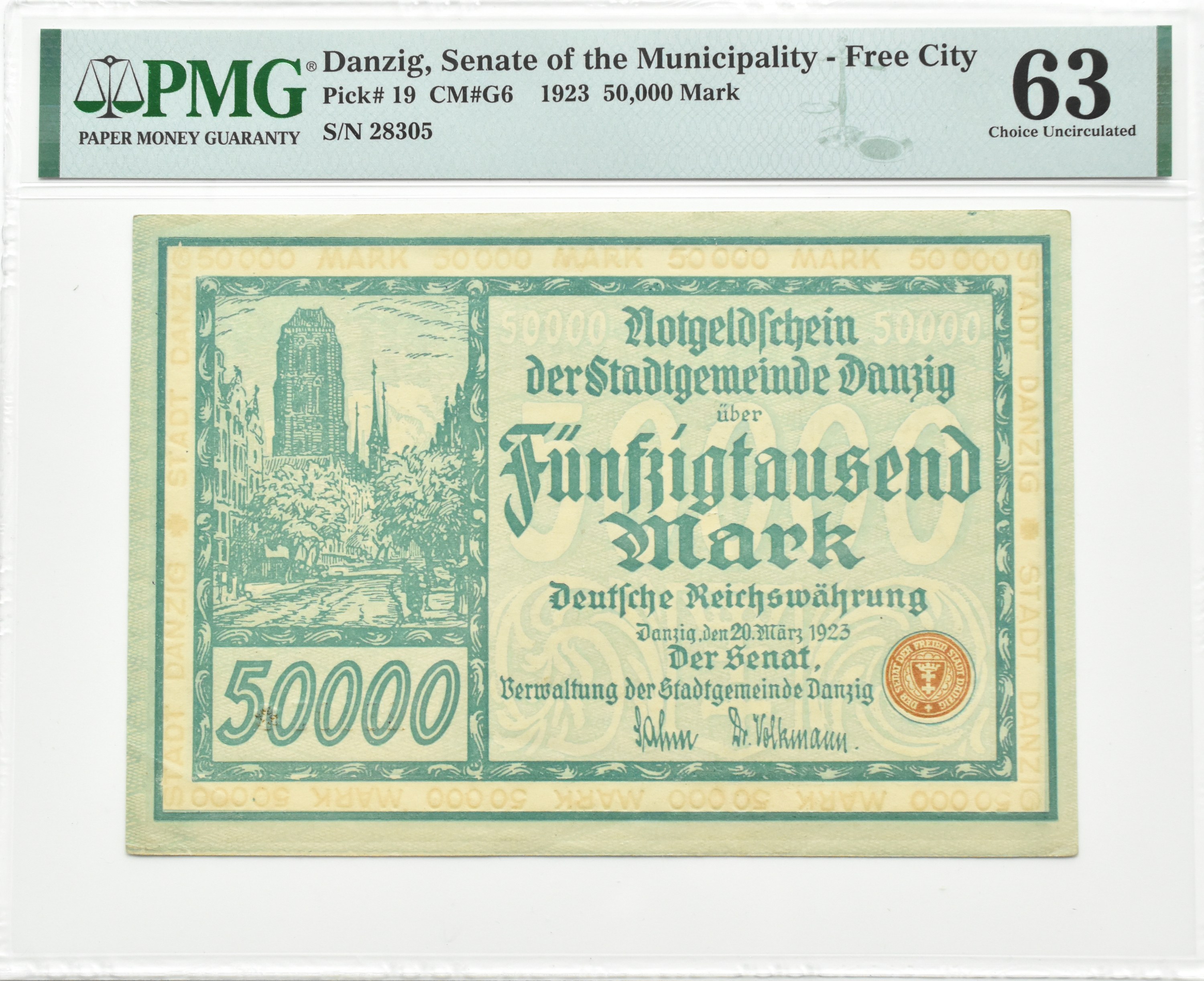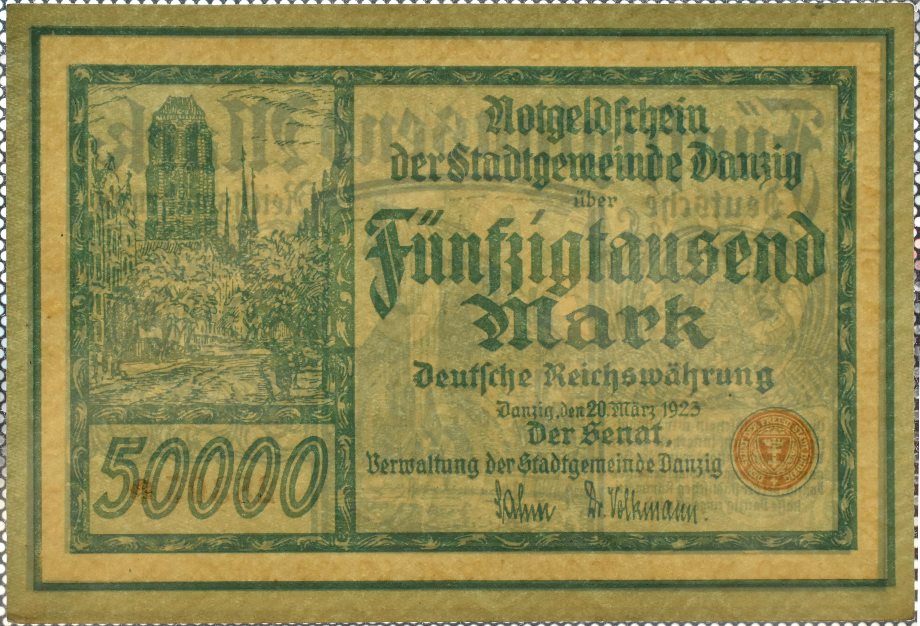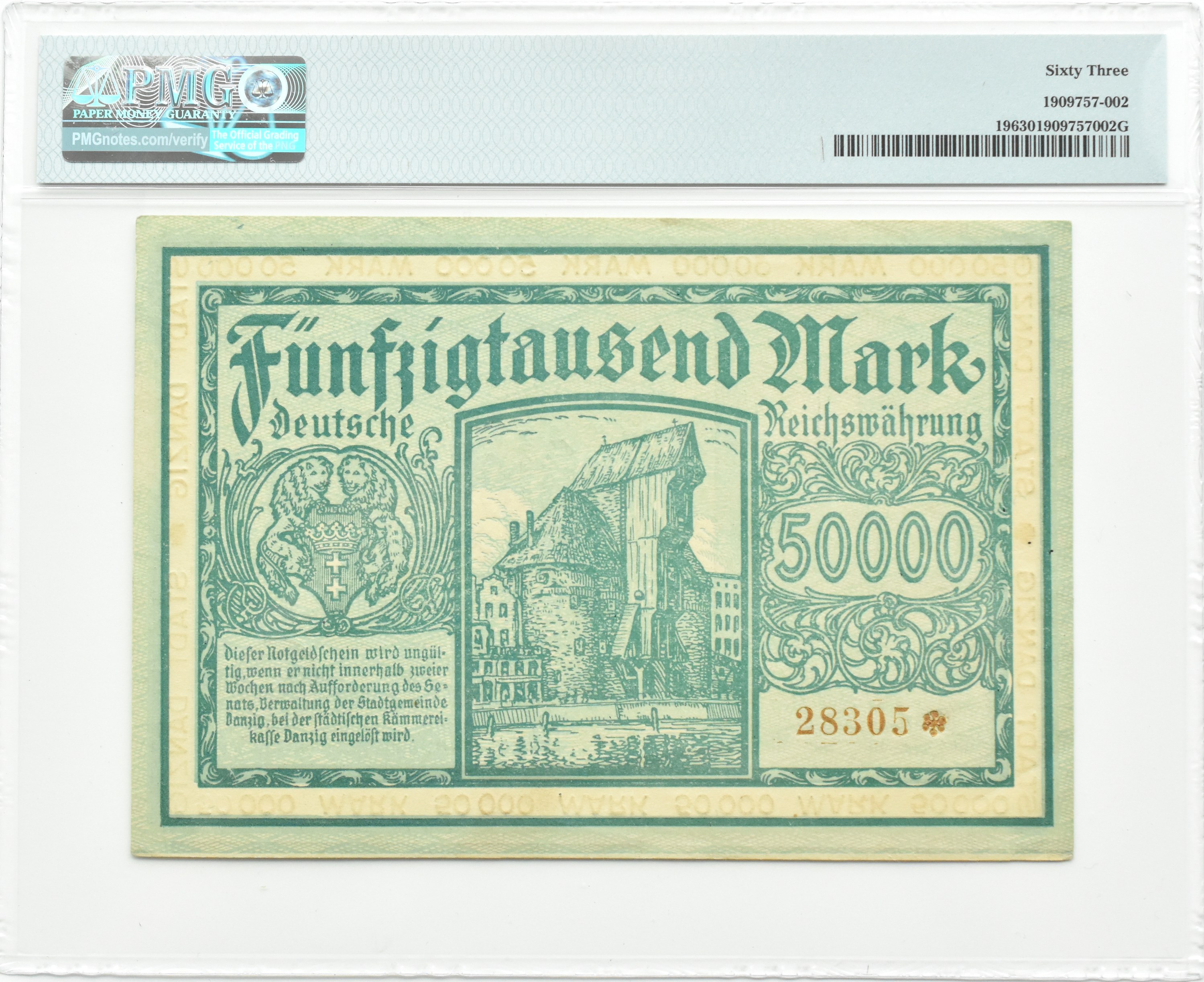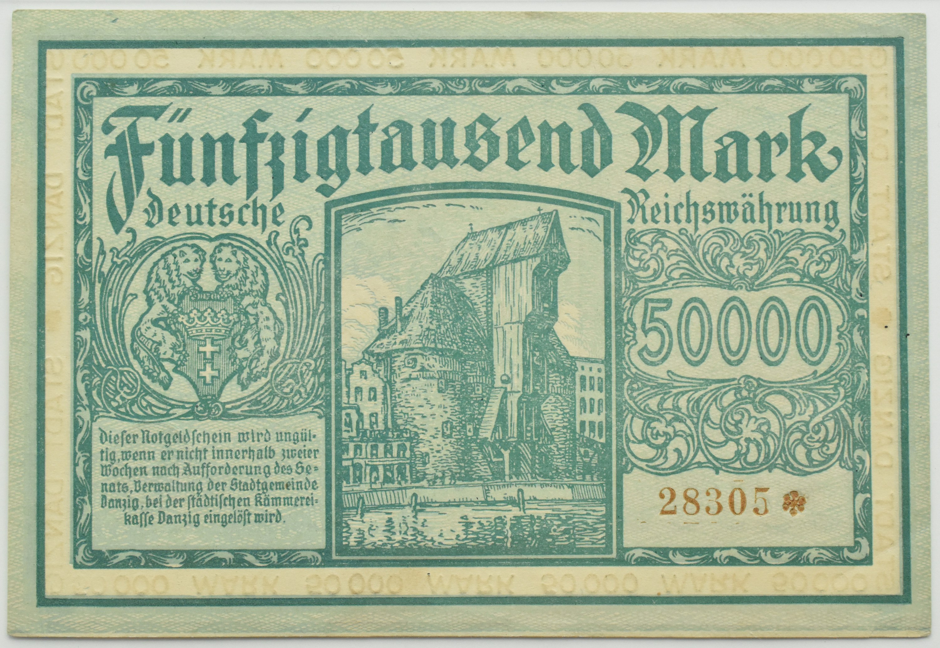 Wolne Miasto Gdańsk, 50000 marek 1923 numeracja pięciocyfrowa z ❉, PMG 63