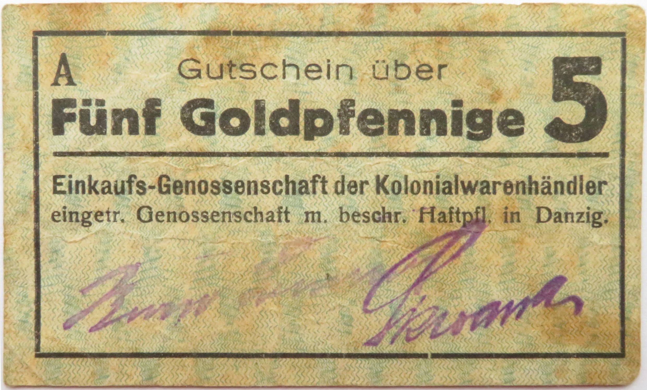 Wolne Miasto Gdańsk, Einkaufs-Genossenschaft, 5 goldpfennige, seria A, rzadkie