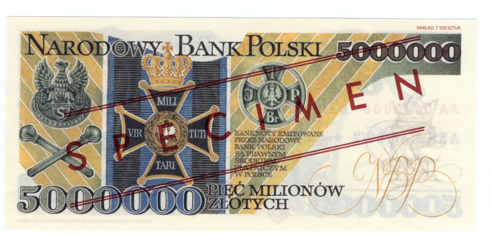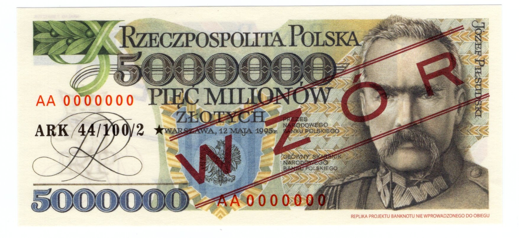 Wzór - 5.000.000 złotych 1995 - seria AA 0000000 - ARK
