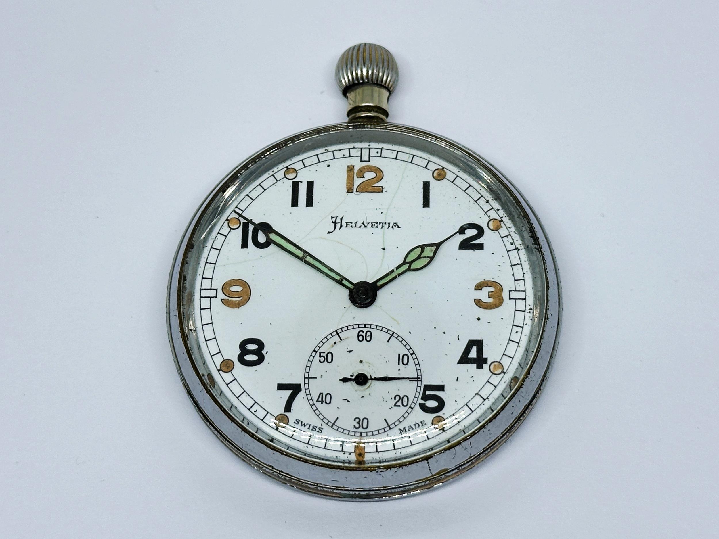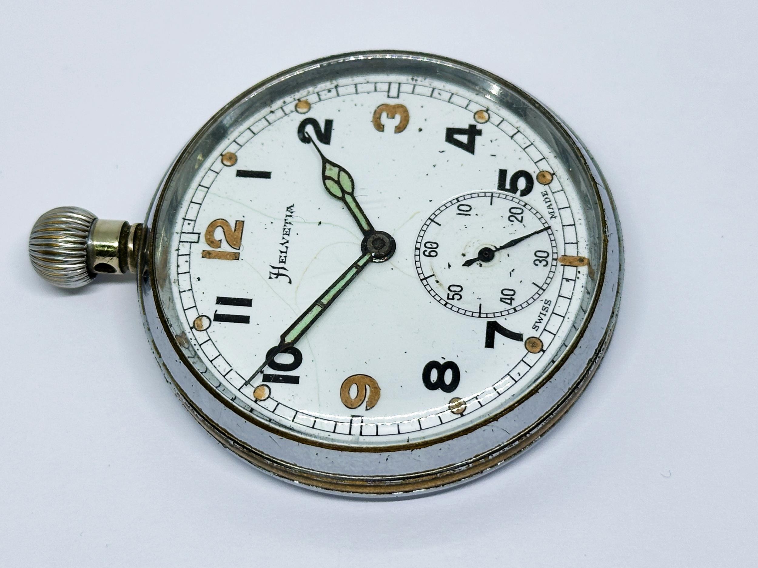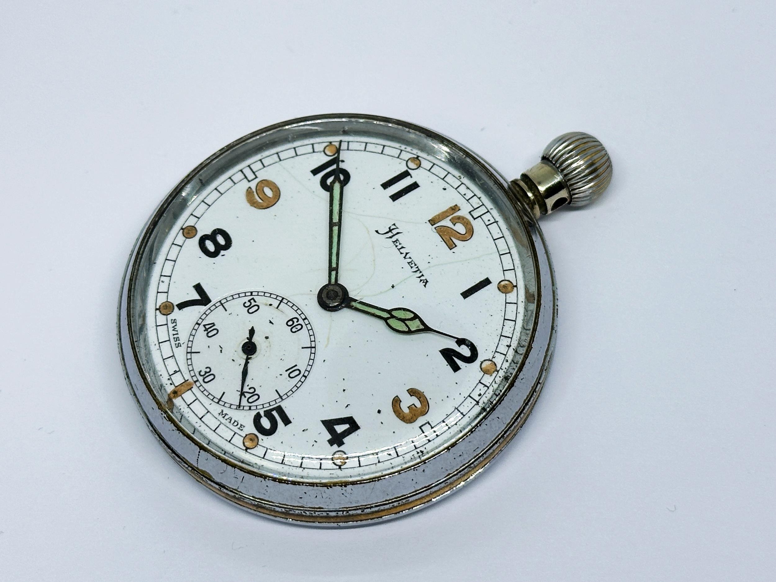 Zegarek kieszonkowy mechaniczny wojskowy Helvetia Swiss Made, 52 mm koperta