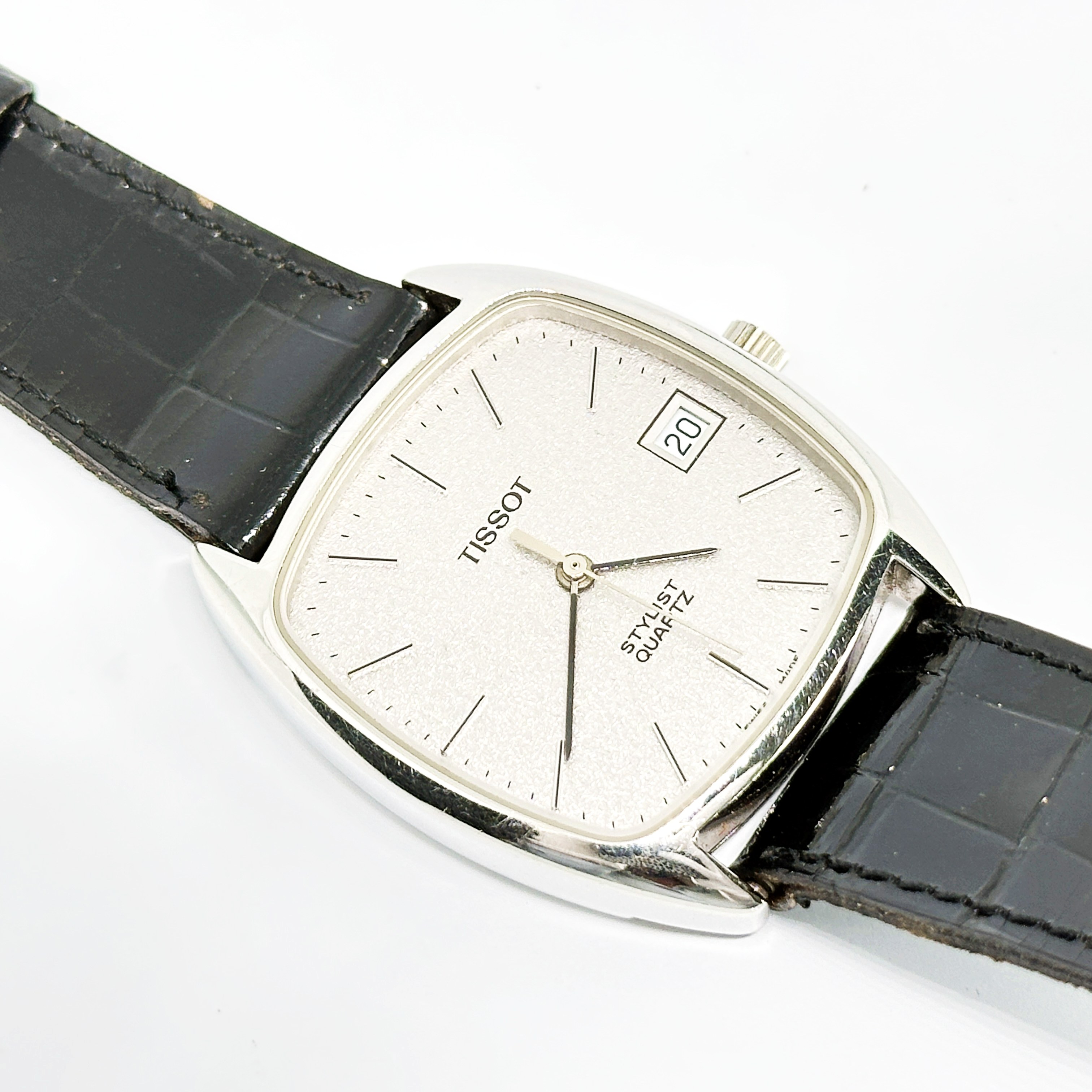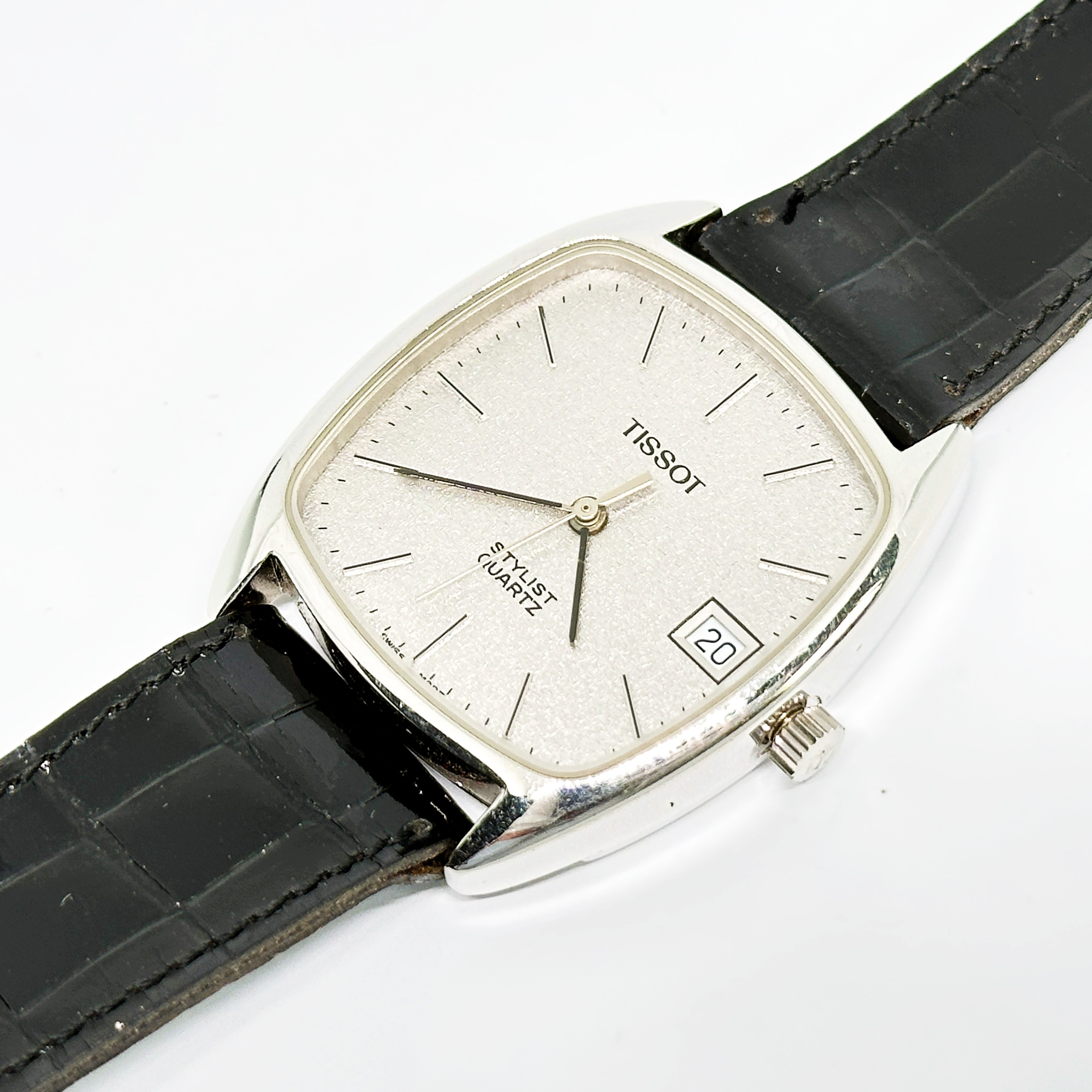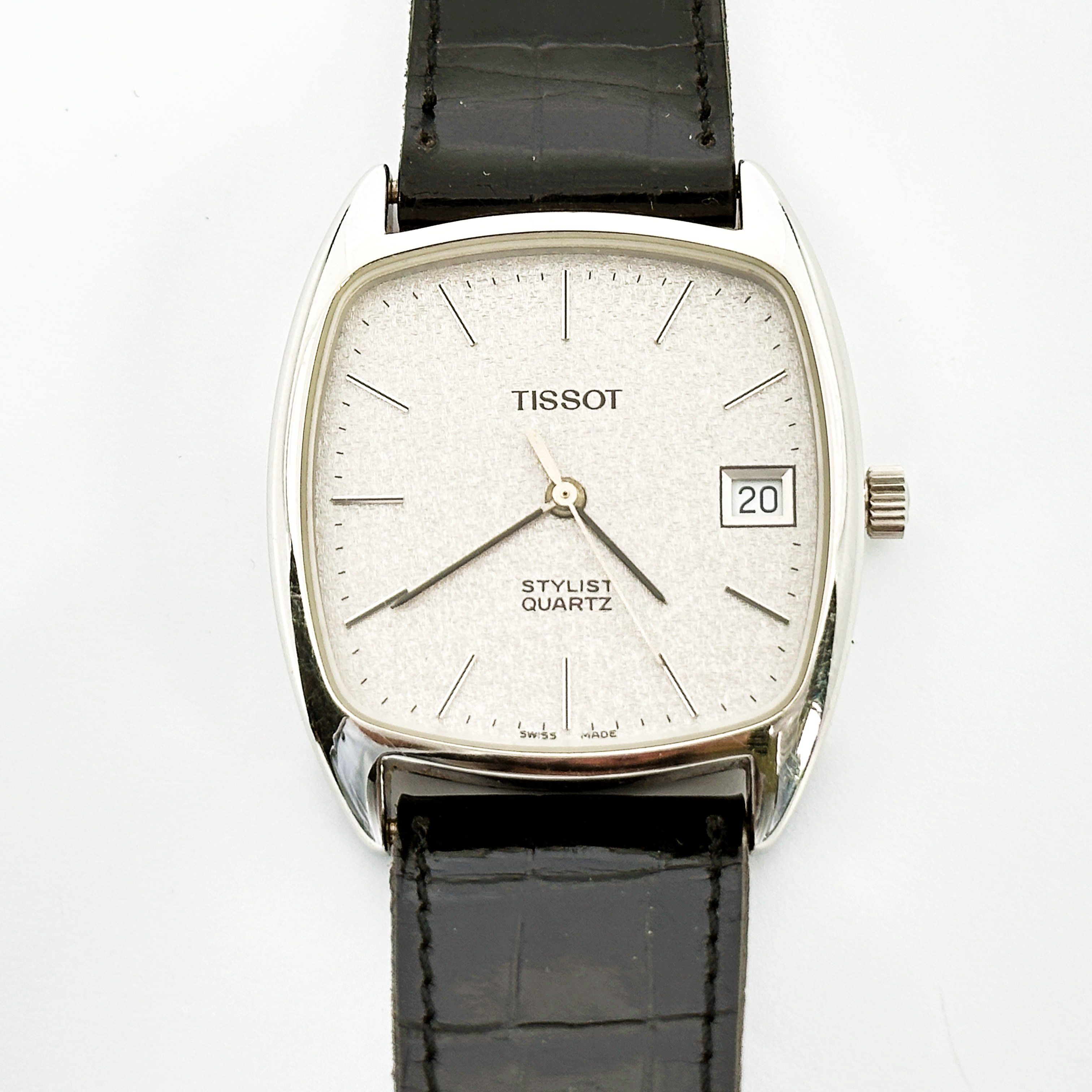 Zegarek stalowy, kwarcowy, z datownikiem. Skórzany pasek Tissot. Zegarek na chodzie. Stan wizualny praktycznie idealny, widoczny na zdjęciach. Zegarek po serwisie