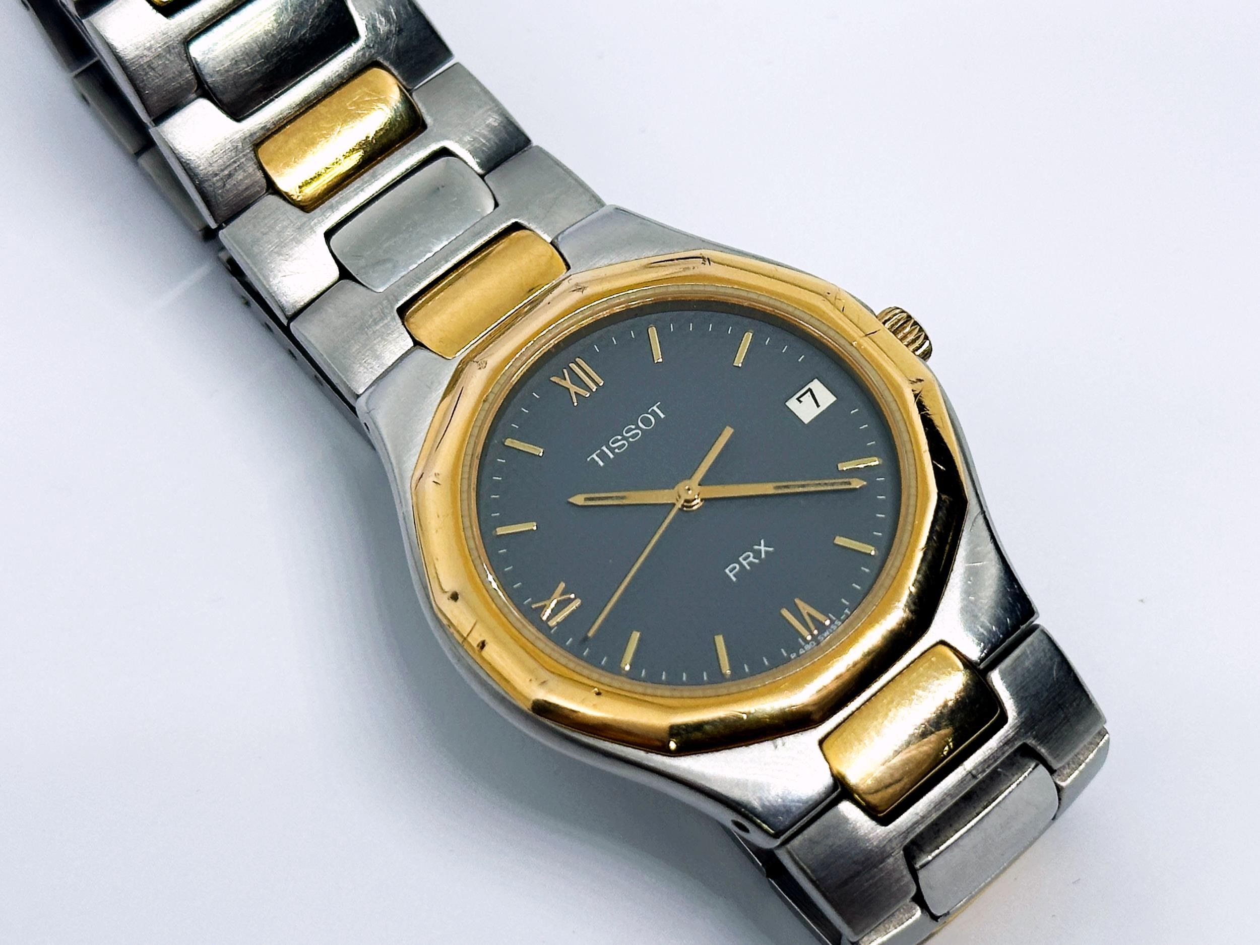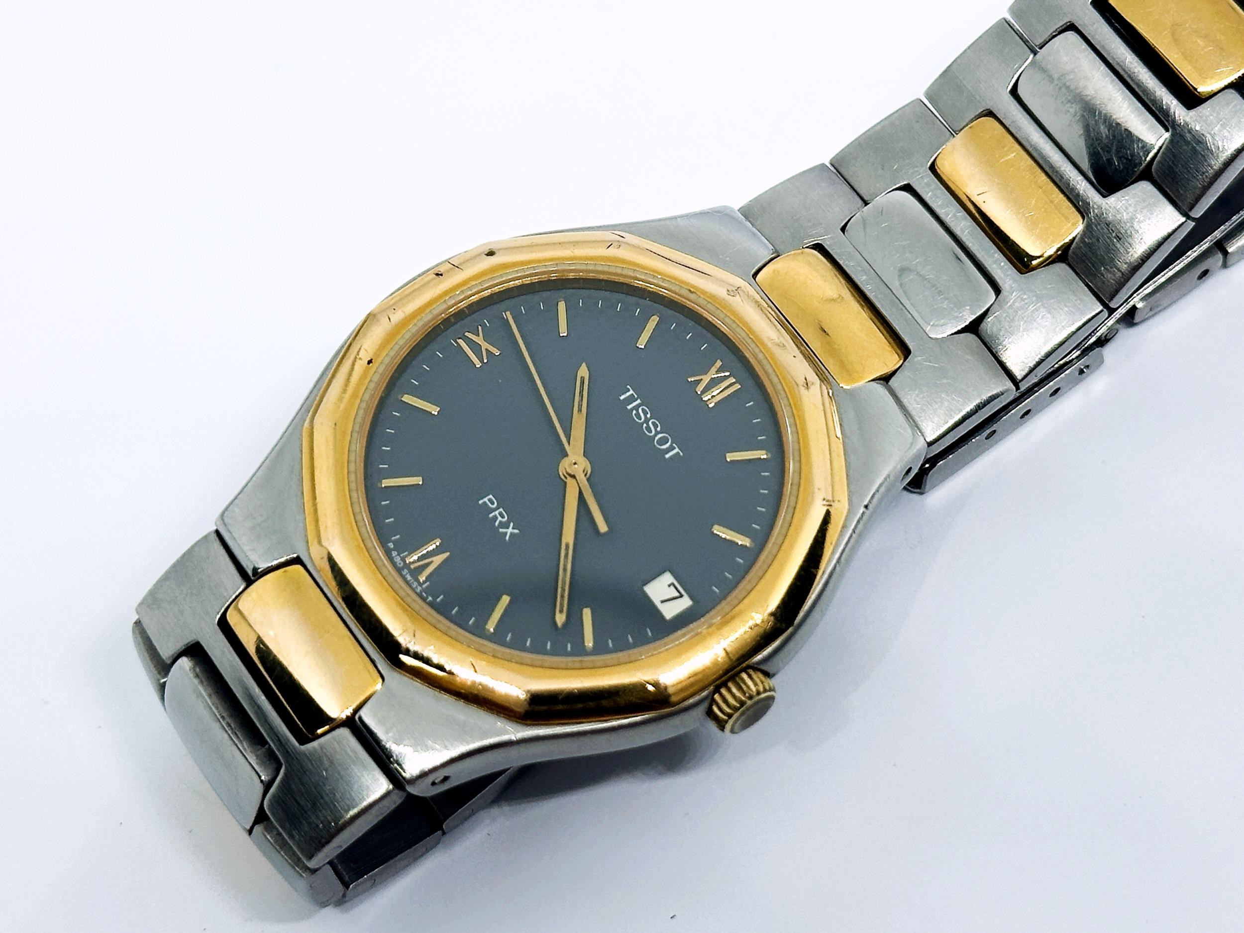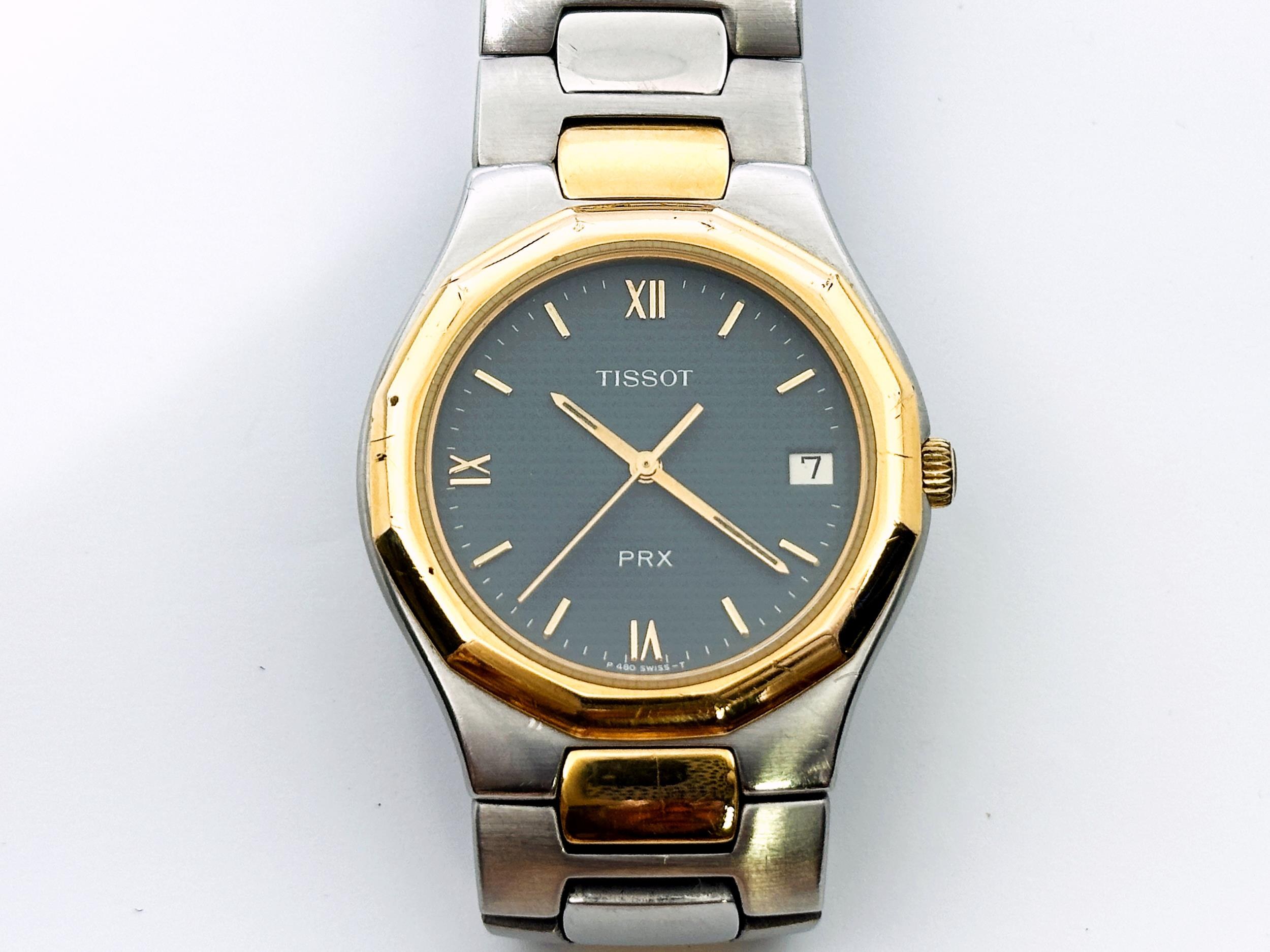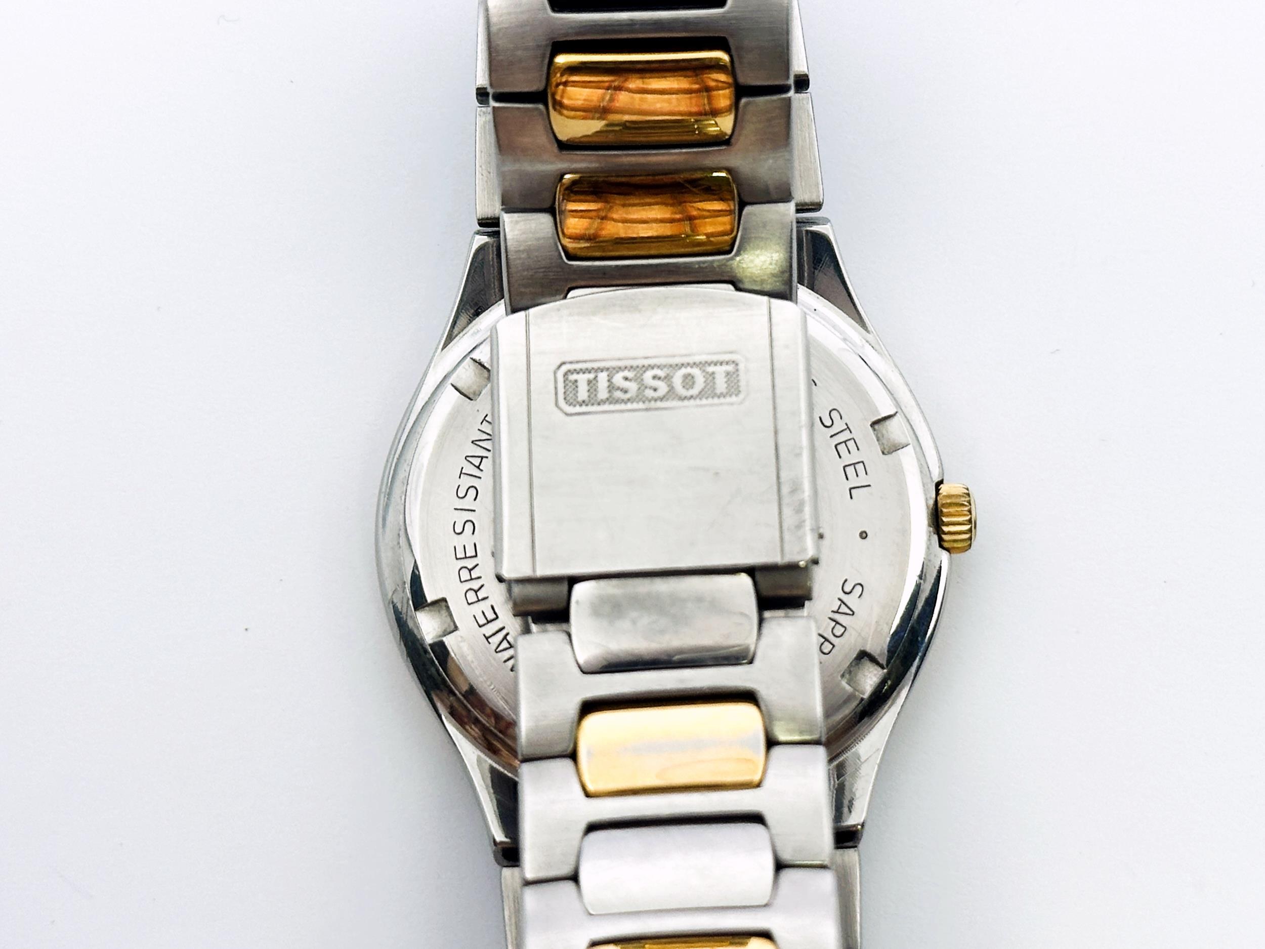 Zegarek stalowy z pozłoceniem, kwarcowy, z DayDate, WR100M, szafirowe szkło. Numery na deklu: P360/460. Zegarek na chodzie. Stan wizualny bardzo dobry, widoczny na zdjęciach