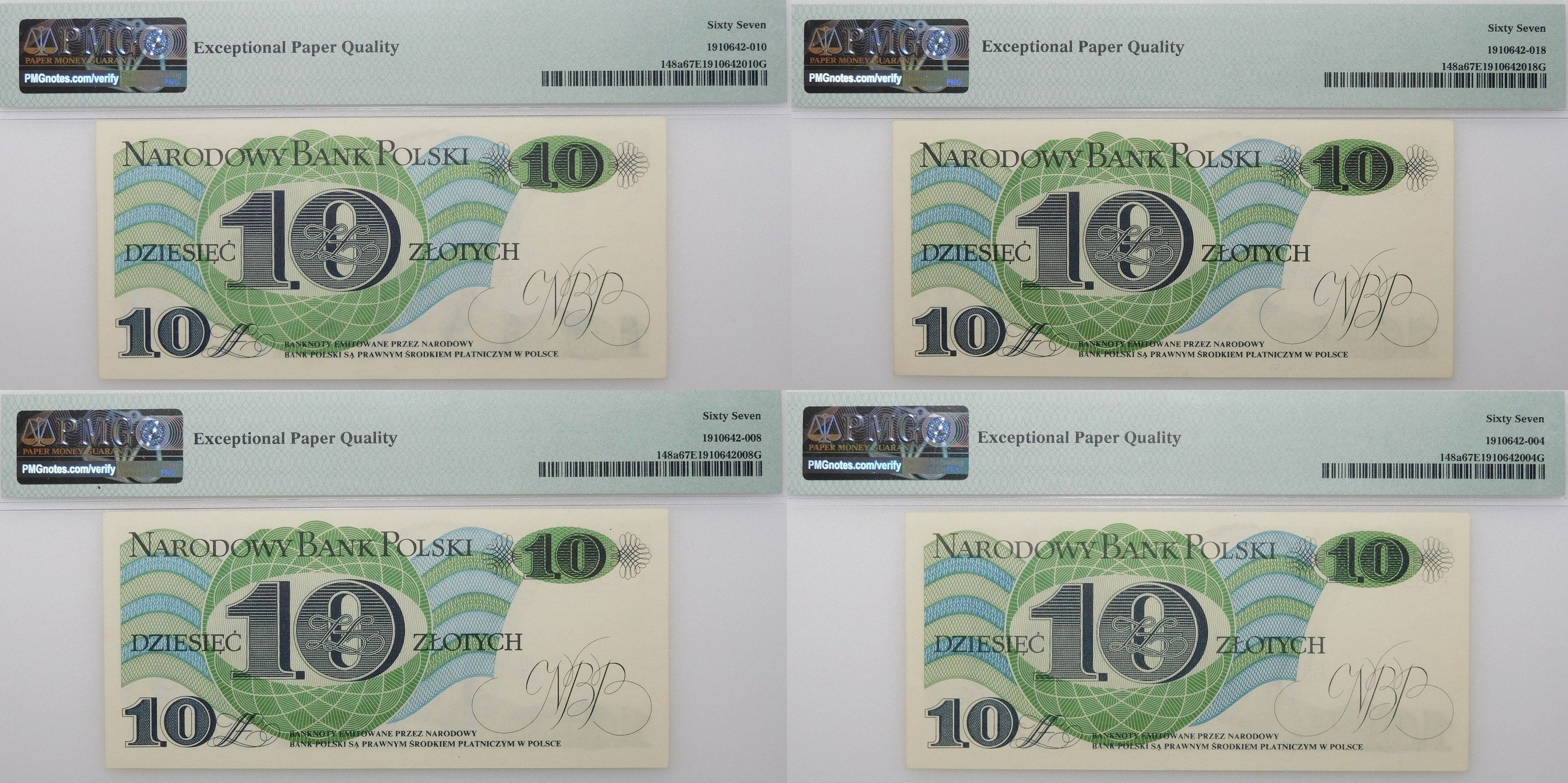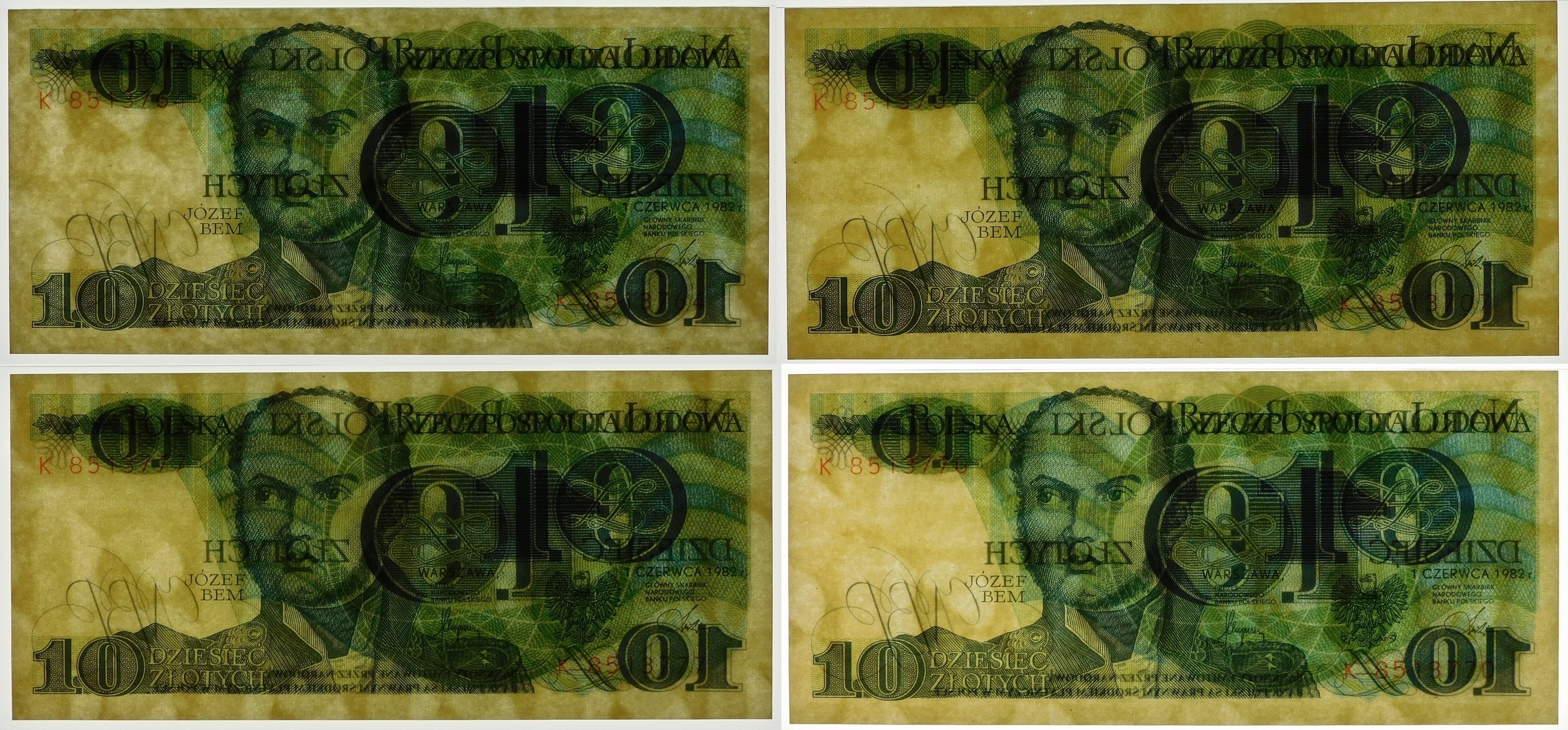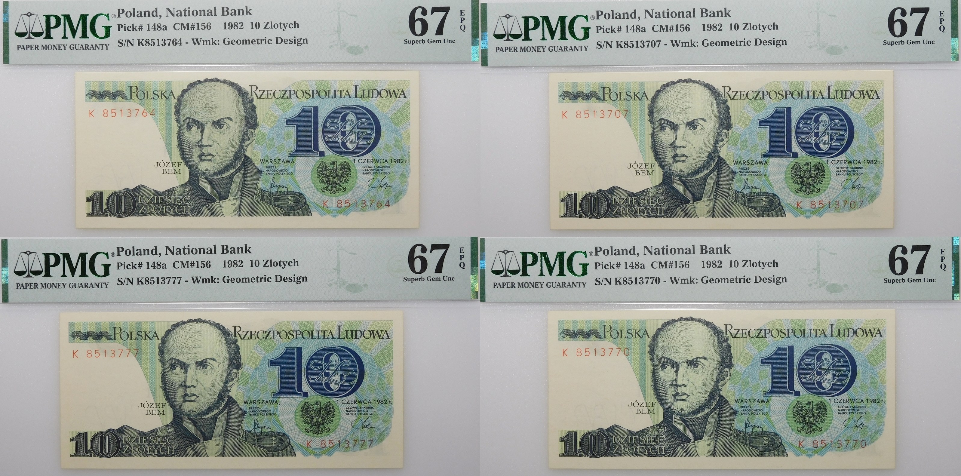 Zestaw czterech banknotów 10 złotych 1982, 4 x ser. K