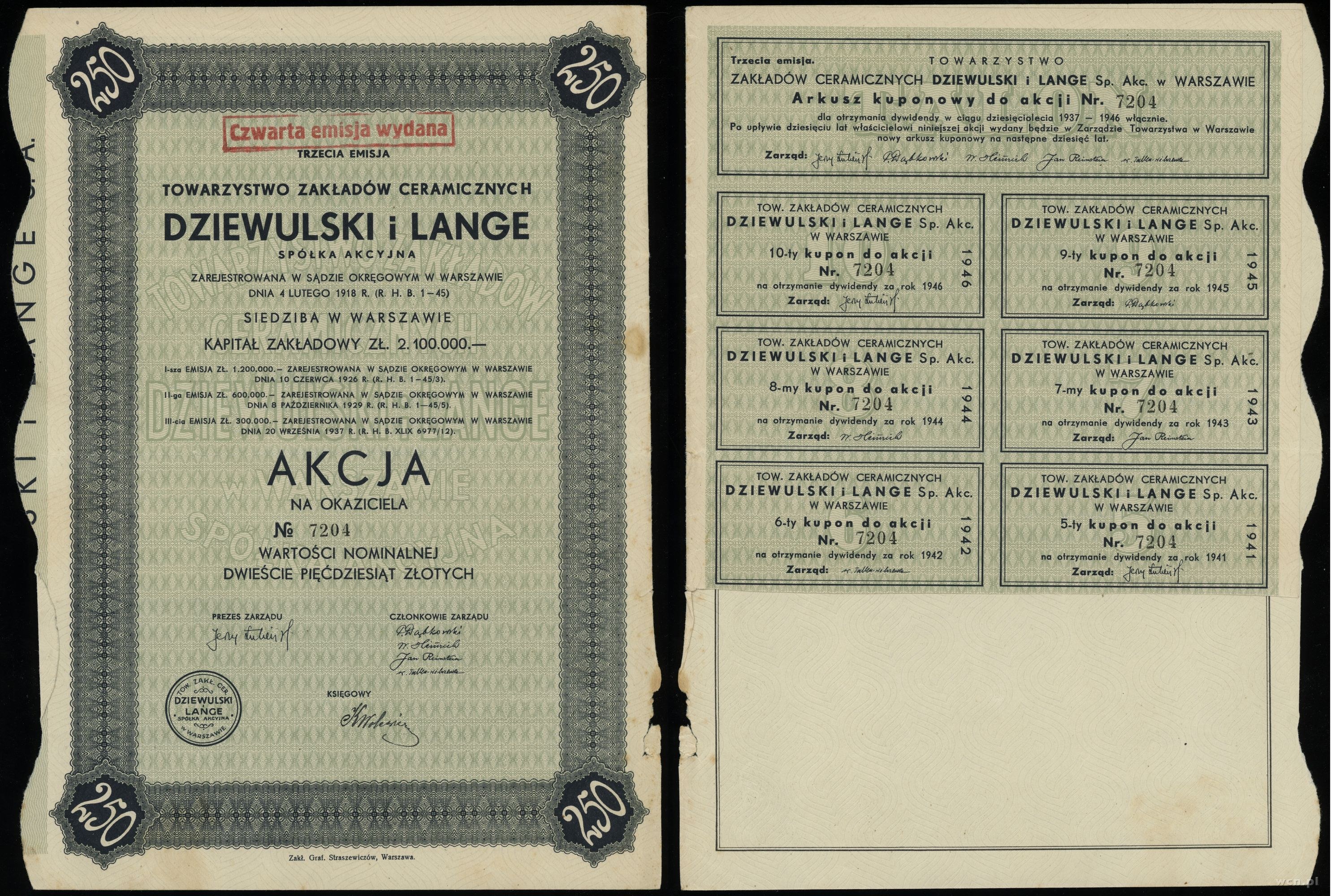 trzecia emisja, numeracja 7204, wraz z kuponami na lata 1941–1946