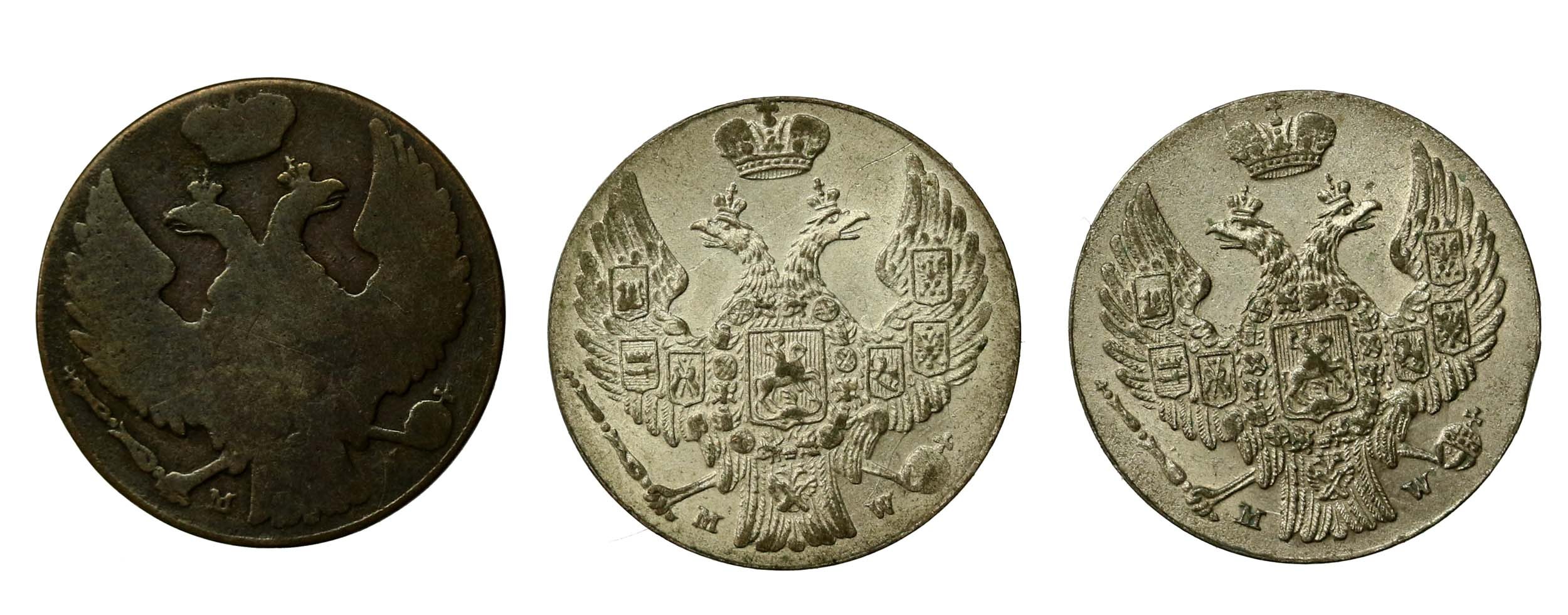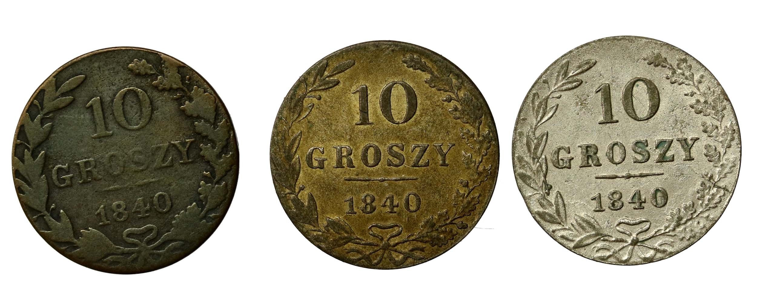 Zabór rosyjski, zestaw 10 groszy 1840. Razem 3 sztuki. Dobrze zachowane monety
