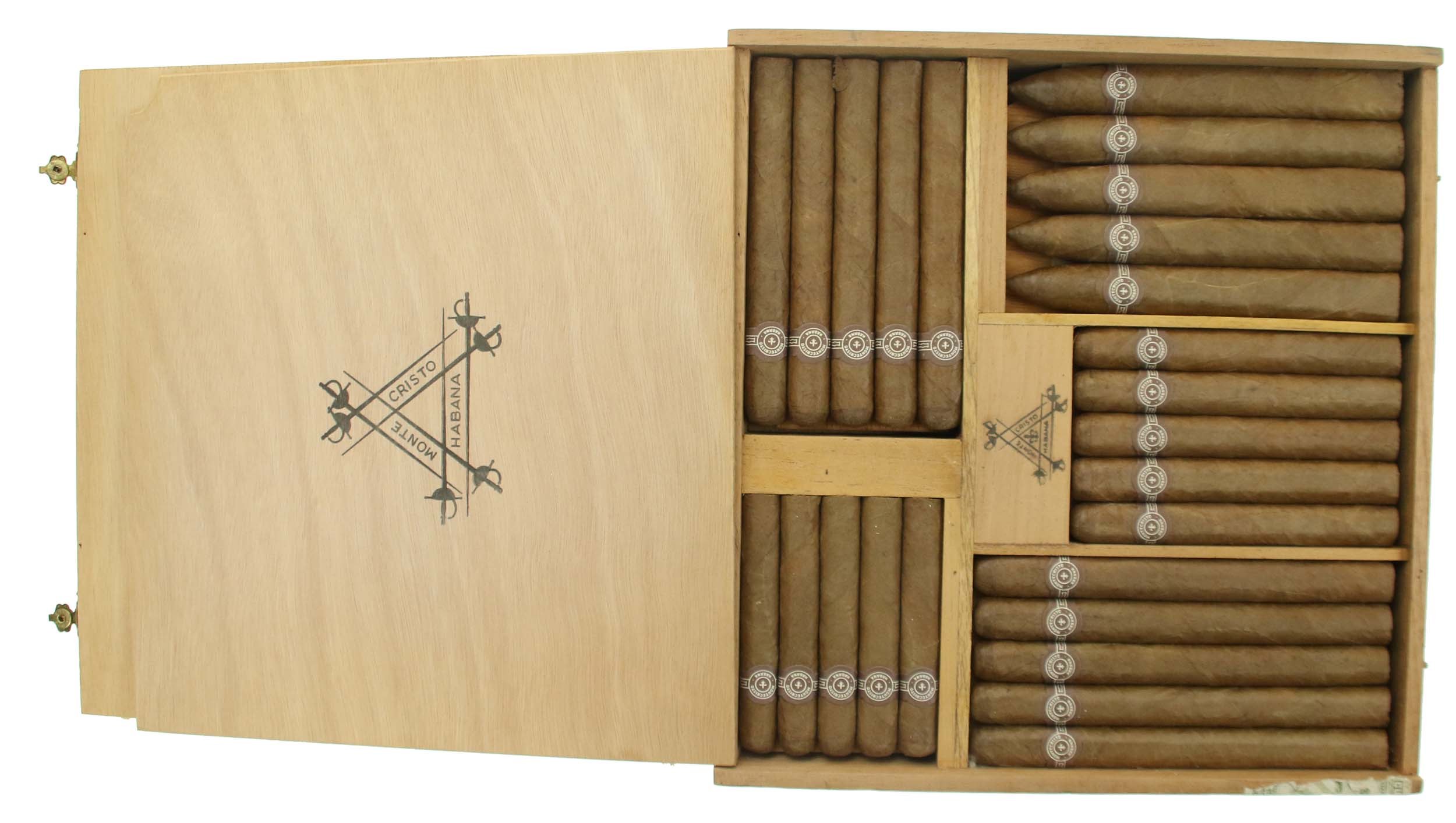 Cygara kubańskie Montecristo Habana, pełne pudełko 27 x 29 x 5 cm. Dwie warstwy.
