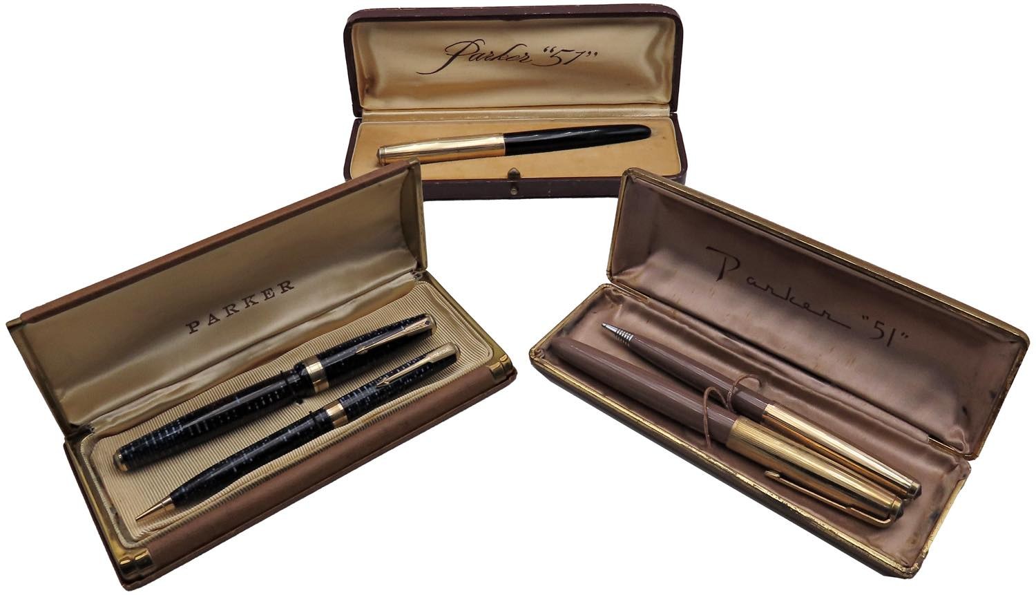 PARKER - Lotto di 5 penne in scatola originale - Le penne sono stilografiche e a sfera. Elementi in ottimo stato conservativo, alcune penne persino nuove, vendute in scatola originale. Esaminare foto o chiedere condition report.