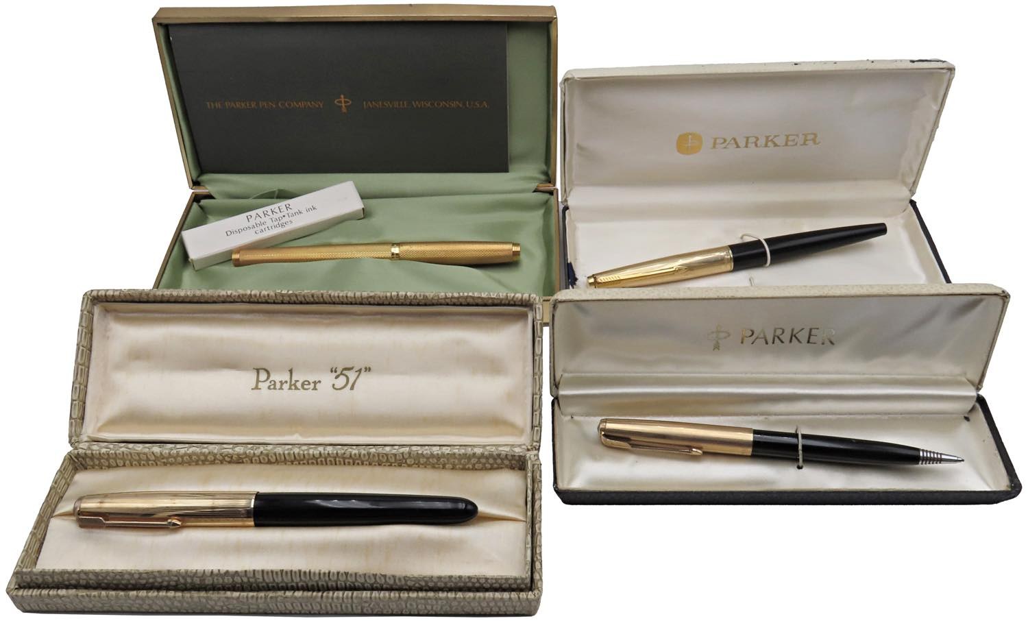 PARKER - Lotto di 7 penne in scatola originale - Le penne sono stilografiche, a sfera e vi sono anche dei portamine. Elementi in ottimo stato conservativo, alcune penne persino nuove, vendute in scatola originale (una incompleta). Esaminare foto o chiedere condition report.