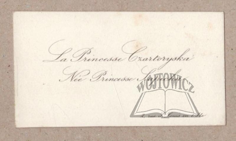 (CZARTORYSKA, wizytówka). Anna Zofia z ksiażąt Sapiehów księżna Czartoryska (1799-1864).