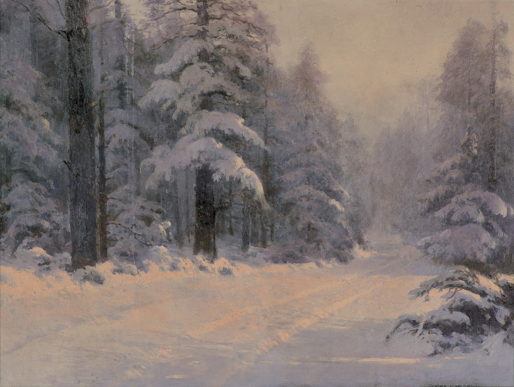 Wiktor Korecki (Kamieniec Podolski 1890 - Komorów k. Warszawy 1980) - malarz pejzażysta - gimnazjum ukończył w Kijowie, tam też studiował w Szkole Rysunkowej Aleksandra Muraszki. Po studiach wrócił do Kamieńca Podolskiego, skąd w roku 1921 wyjechał do Warszawy. Tu miał pracownię na rogu ulic Tamki i Cichej. Niestety zgromadzone tam obrazy spłonęły w czasie powstania 1944 roku. Po powstaniu artysta przebywał w obozie w Pruszkowie skąd trafił do obozu pracy w Lipsku. Do kraju powrócił w roku 1946 i zamieszkał w Komorowie pod Warszawą, a później w Milanówku. Jego nastrojowe krajobrazy emanujące spokojem i pogodą cieszyły się zawsze dużą popularnością. Korecki najczęściej malował pejzaże zimowe z motywem leśnej drogi i strumienia wijącego się wśród śniegów, a obok nich także wiosenne, letnie czy jesienne widoki z Mazowsza.