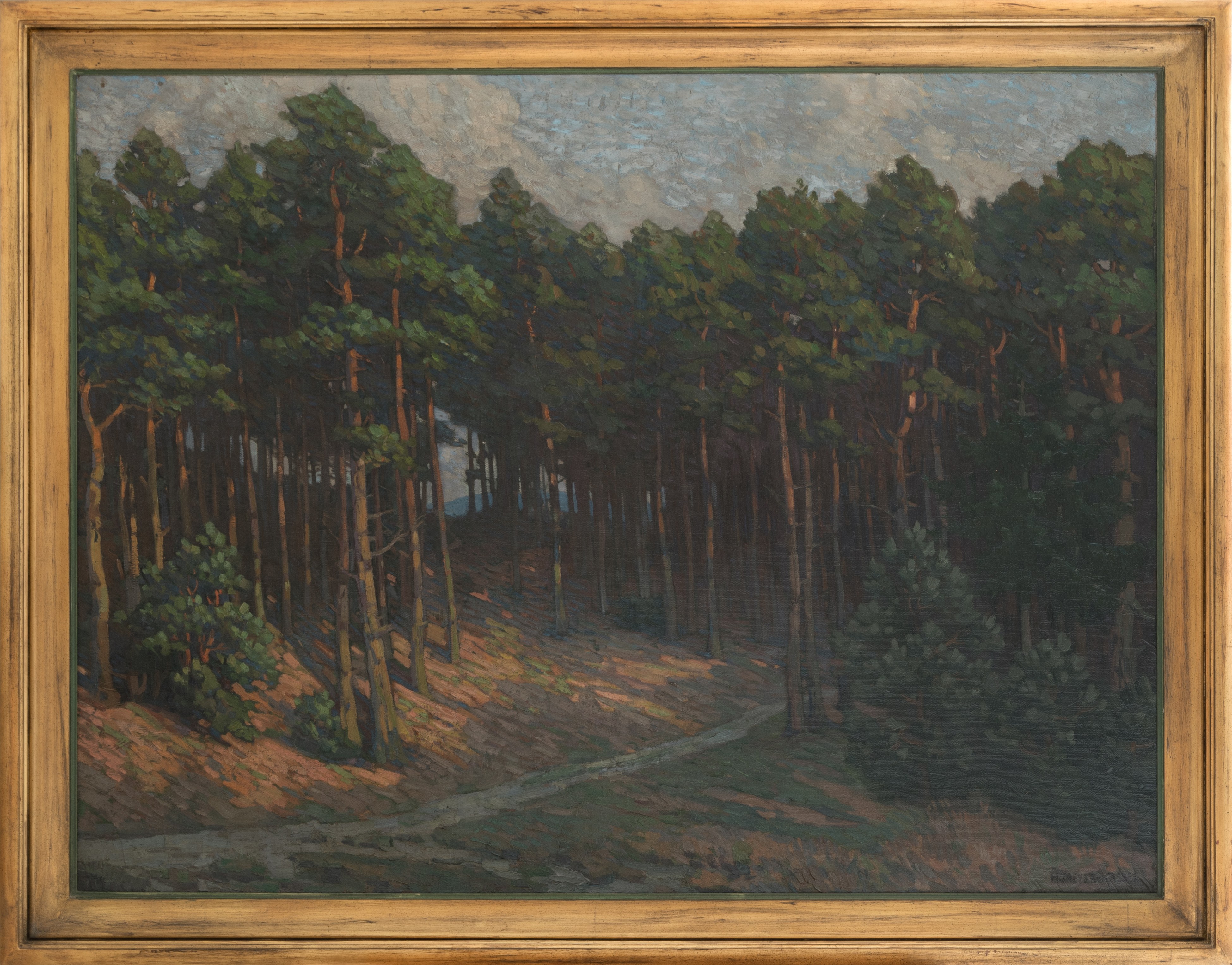 Waldweg, oil on canvas, 96 cm x 126 cm canvas size, signed, partially minimally craquelured, slightly in need of cleaning