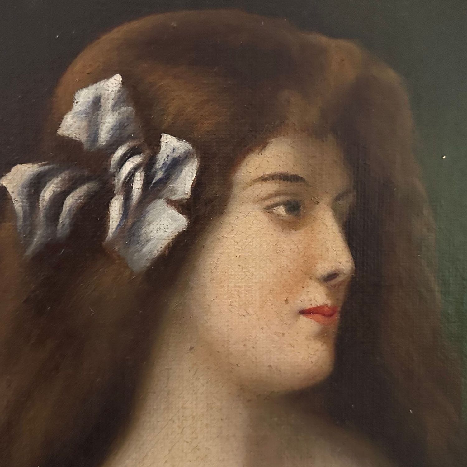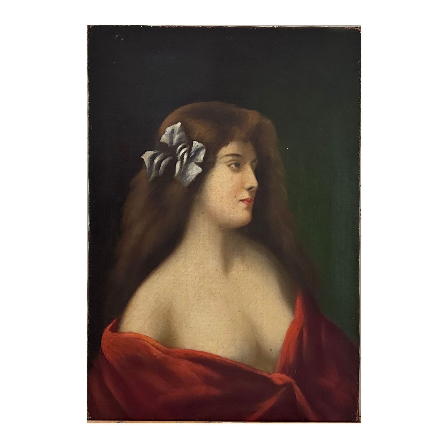 Oil painting on canvas, 20th-century Italian school, depicting a portrait of a woman in the style of Angelo Asti. Dimensions: 37.5x55 cm. (Small signs of wear and tear). Anonymous artist.