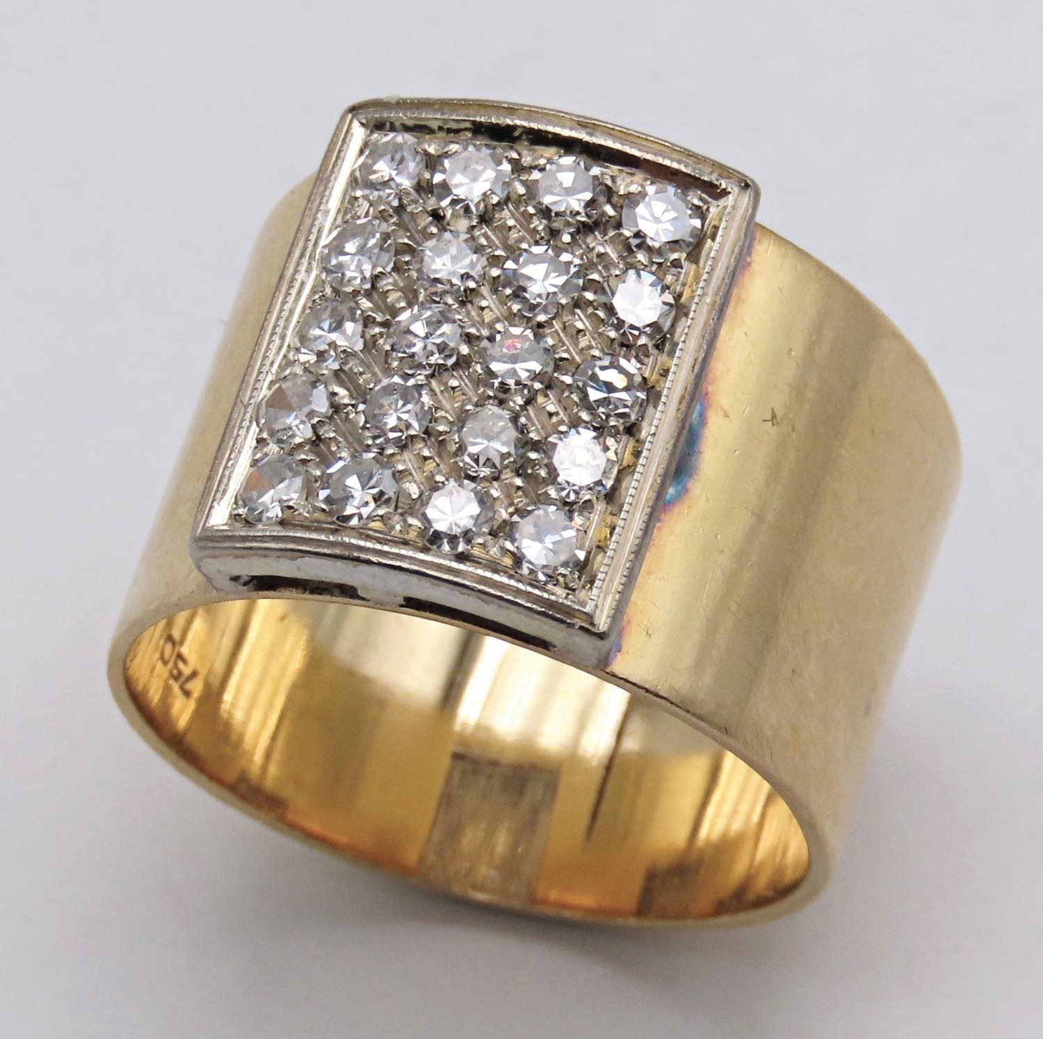 Anello in oro giallo e bianco a fascia con diamanti taglio 8/8 ct. 0,60 circa misura 11. gr.7,40