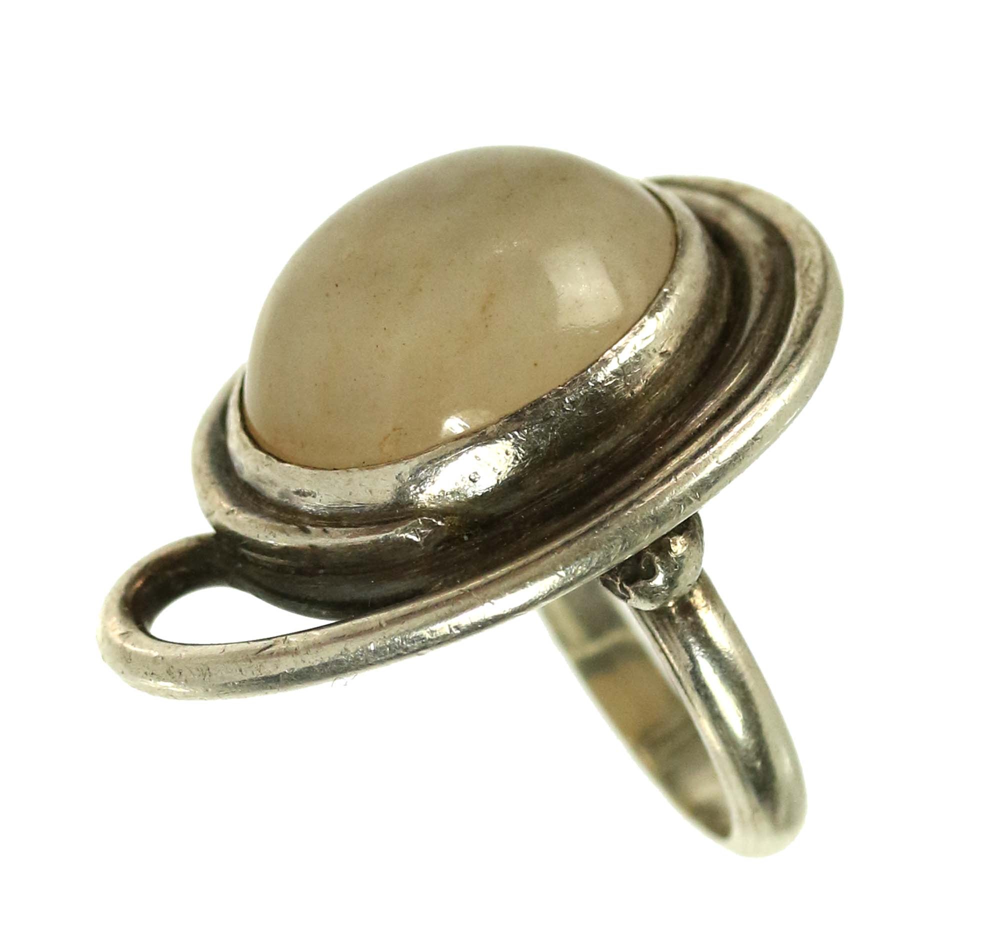 Pierścionek z agatem, ORNO. Sygnatura ORNO oraz próba srebra 3 po 1962 r., waga 12 g, rozmiar 17.