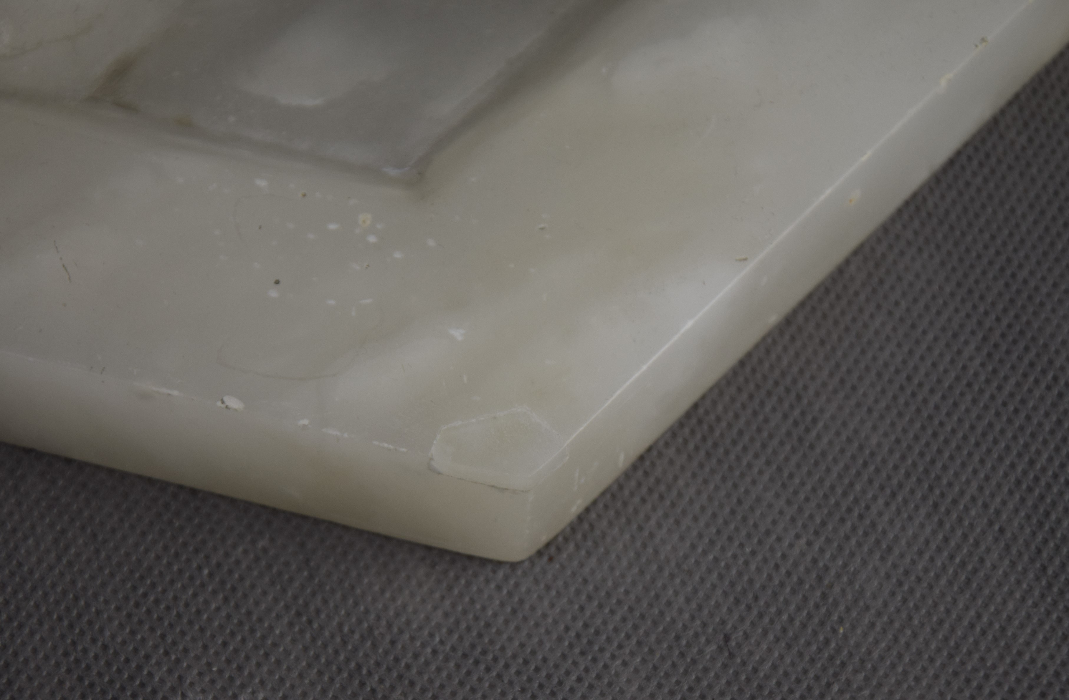 Stan bardzo dobry. Niewielka naprawa na jednym z narożników podstawy.