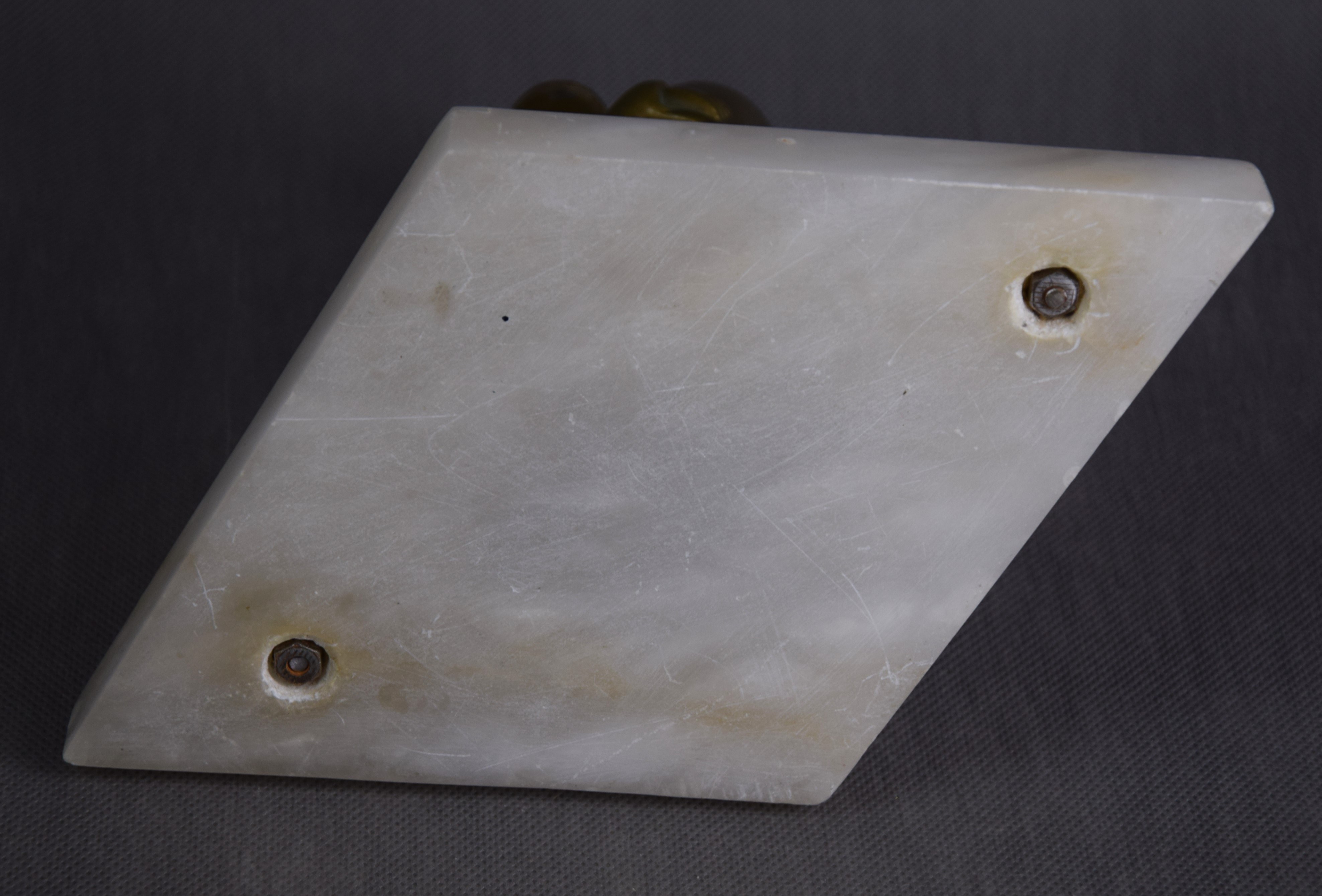 Kamienna podstawa (onyks?), figura z cynkalu polichromowanego.