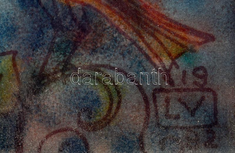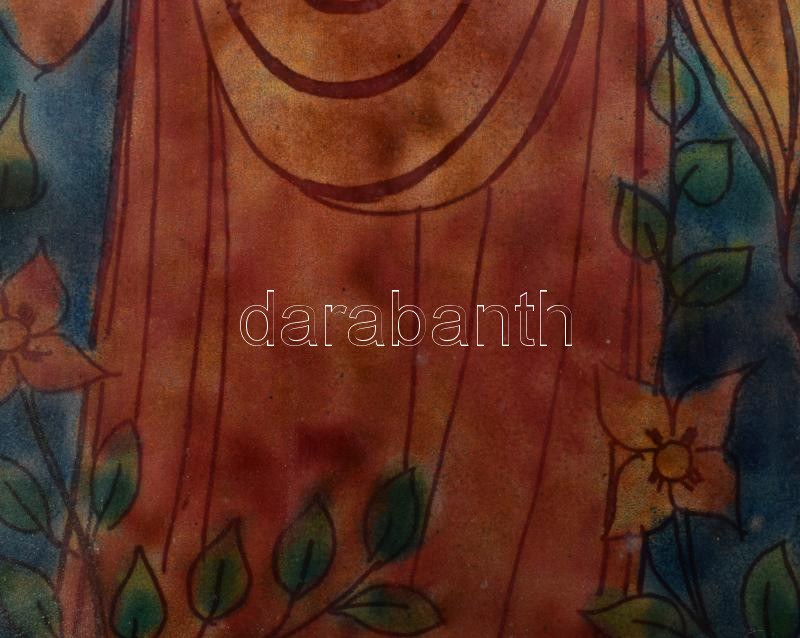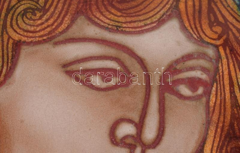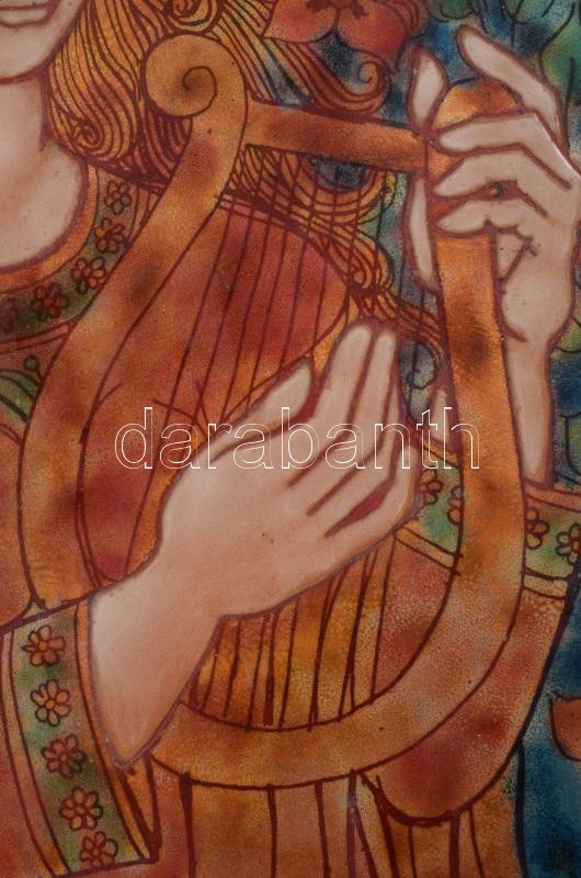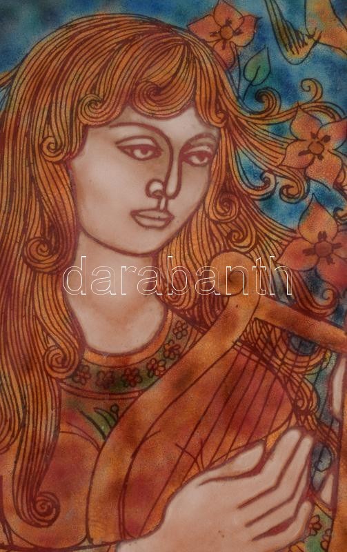 Lőrincz Vitus (1933-): Lantos lány. Tűzzománc, rézlemez 48x20 cm Fa keretben., 58x33 cm Jelzett /// Vitus Lőrincz (1933?): Girl with Lute. Enamel on copper plate, 48 × 20 cm. In wooden frame, 58 × 33 cm. Signed.