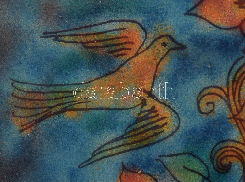 Lőrincz Vitus (1933-): Lantos lány. Tűzzománc, rézlemez 48x20 cm Fa keretben., 58x33 cm Jelzett /// Vitus Lőrincz (1933...