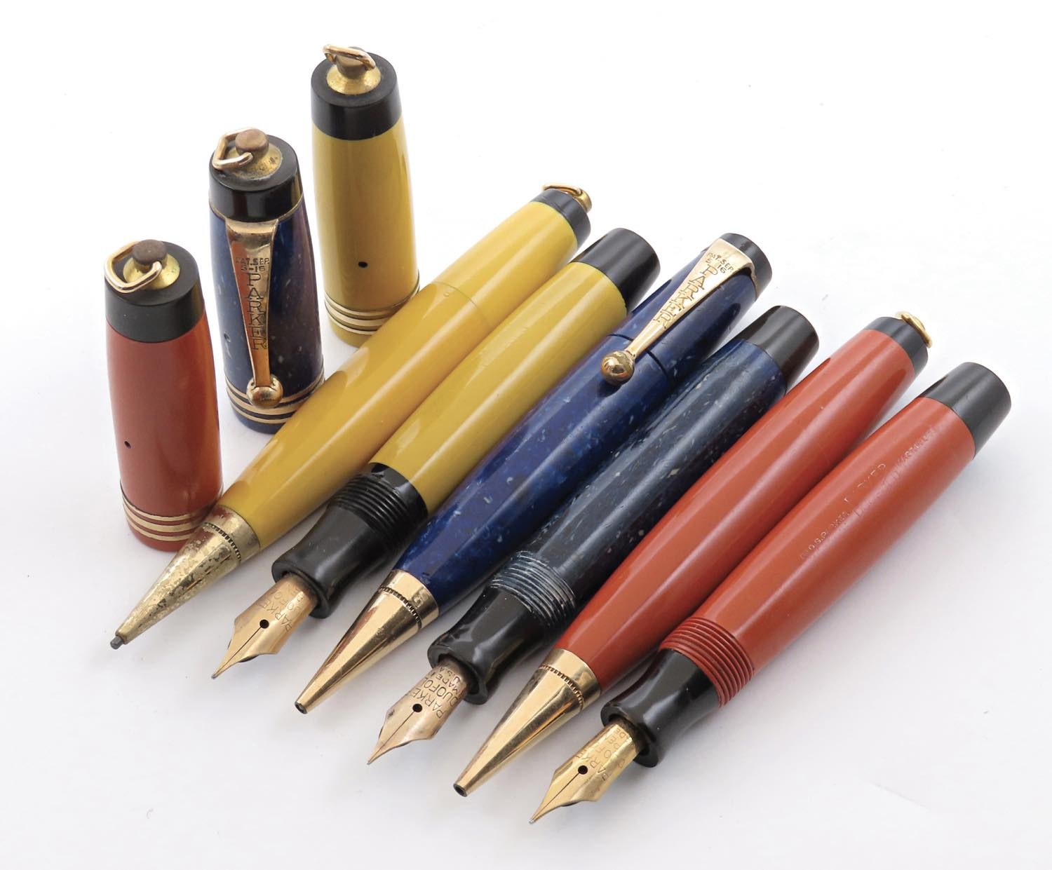 Pens - PARKER. DUOFOLD LADY. N. 3 Stilografiche e N. 3 po...