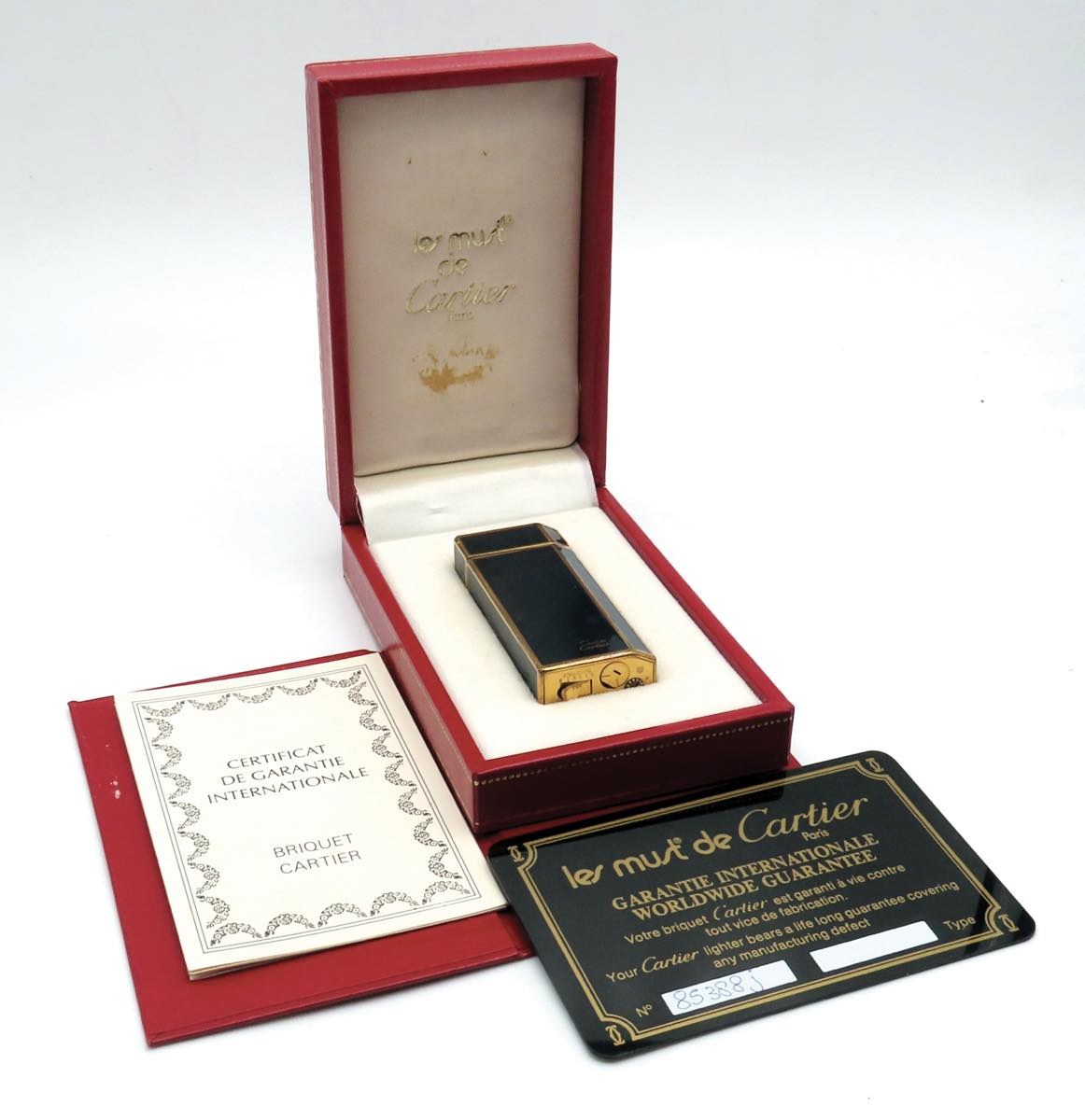 CARTIER - Accendino - Corpo in lacca di Cina blu con misure 6x 2,5 cm. Corpo non simmetrico. Oggetto usato, venduto in scatola originale e garanzia. Revisione necessaria
