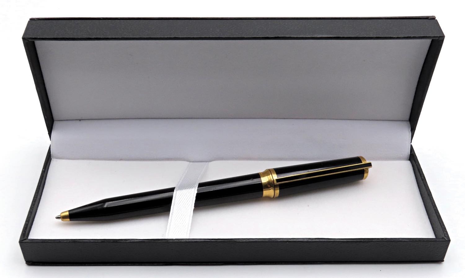 S.T. DUPONT. Penna a sfera. Corpo in resina nera con finiture dorate. Oggetto usato, venduto in scatola neutra.