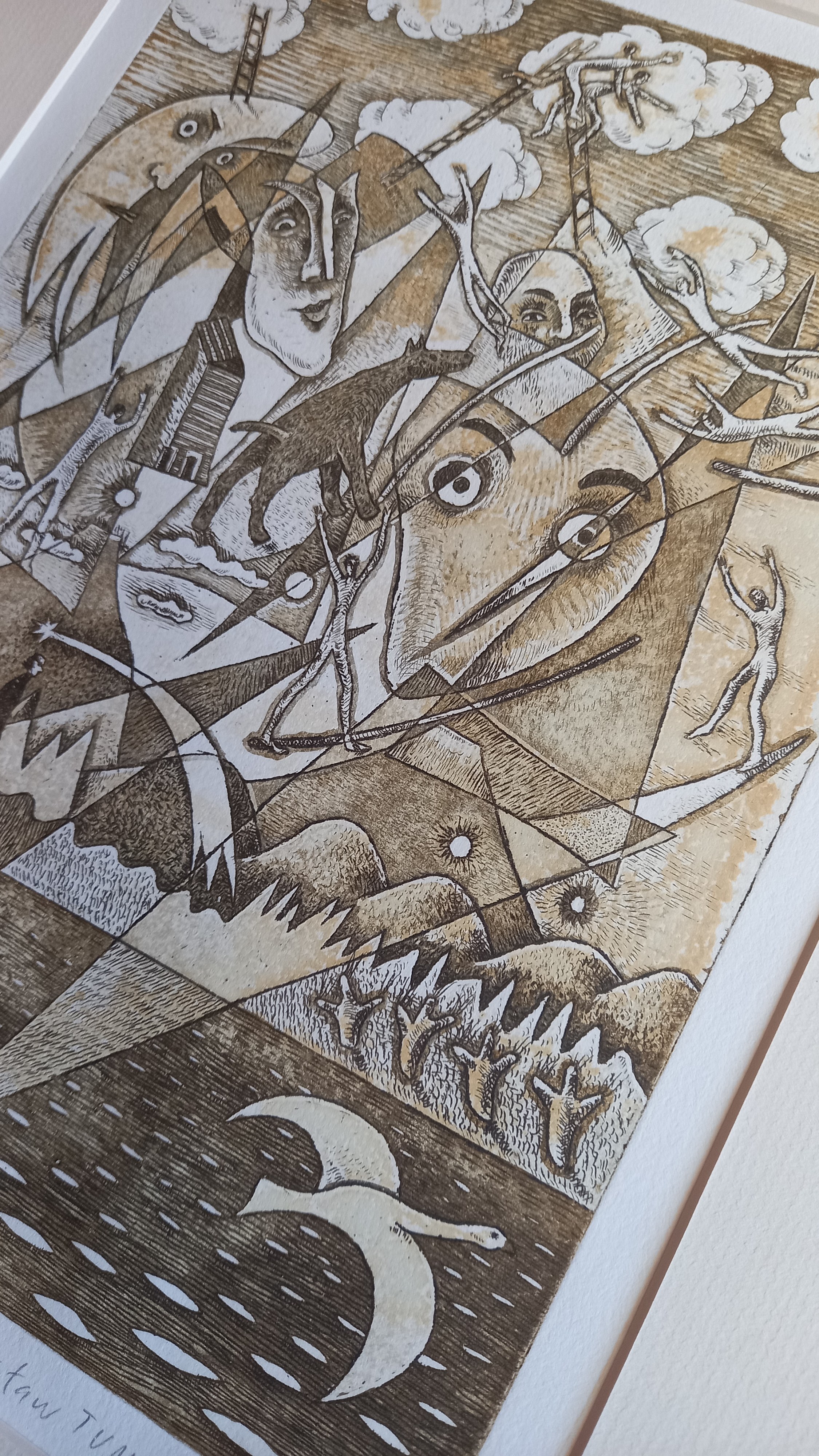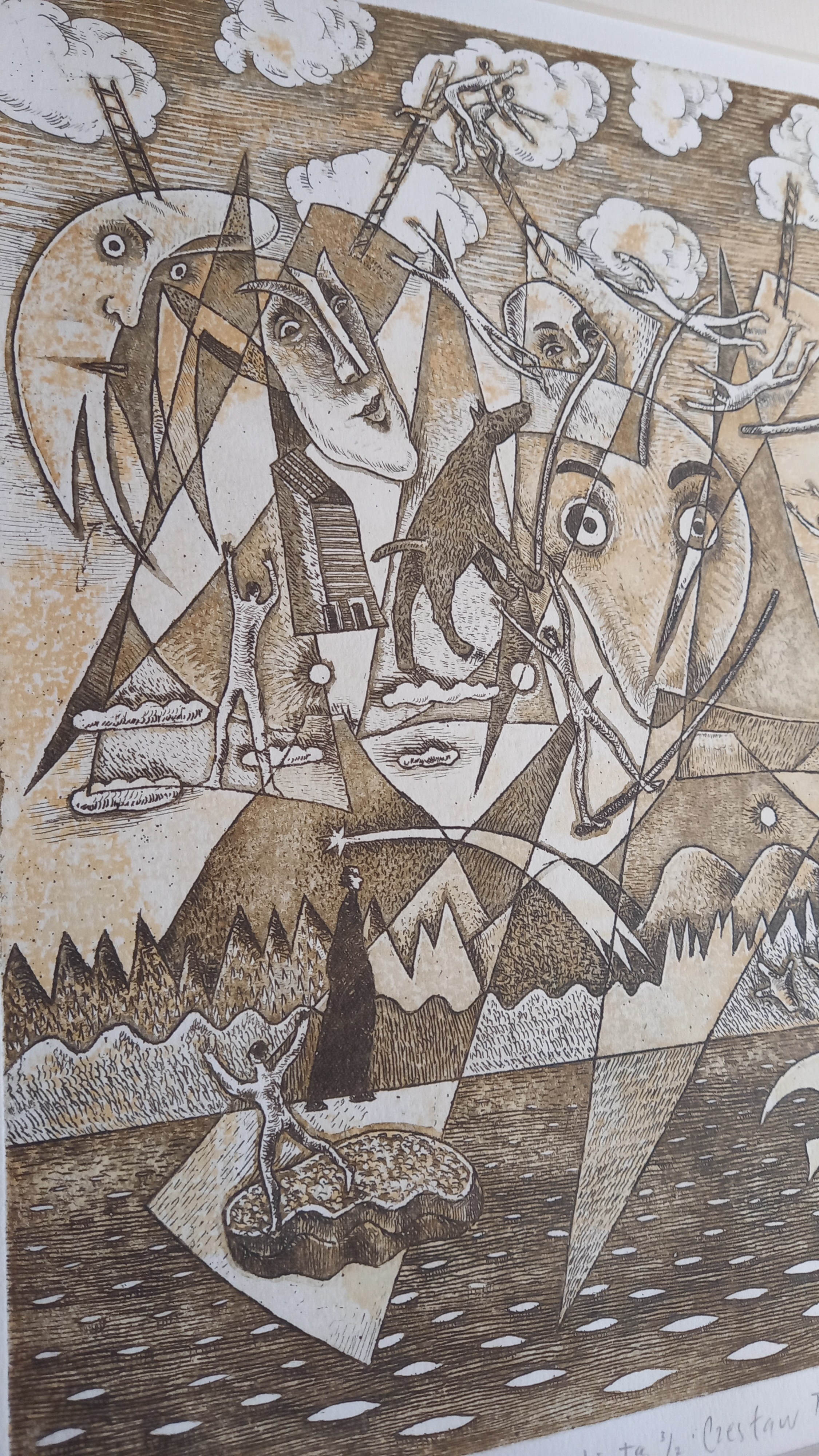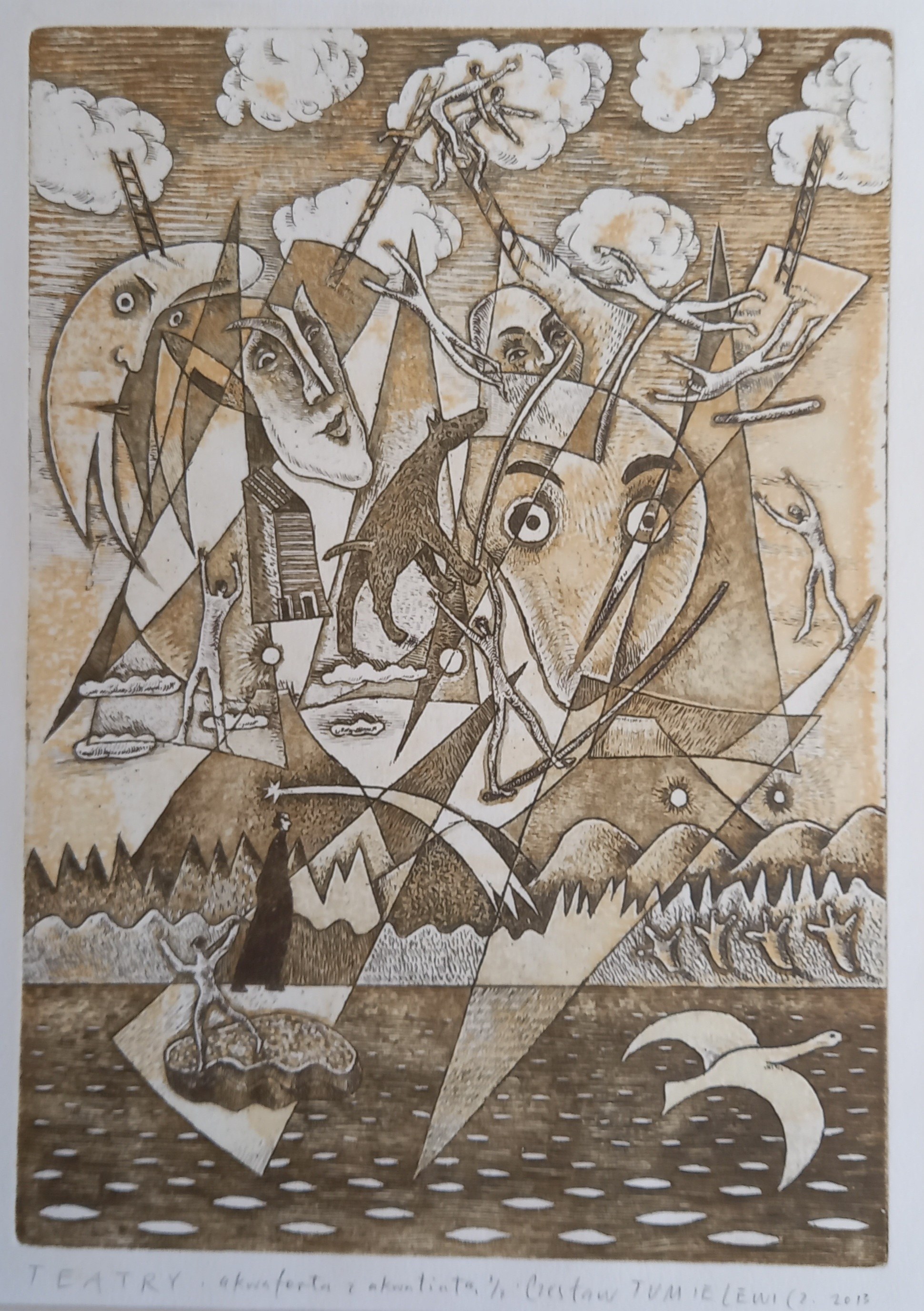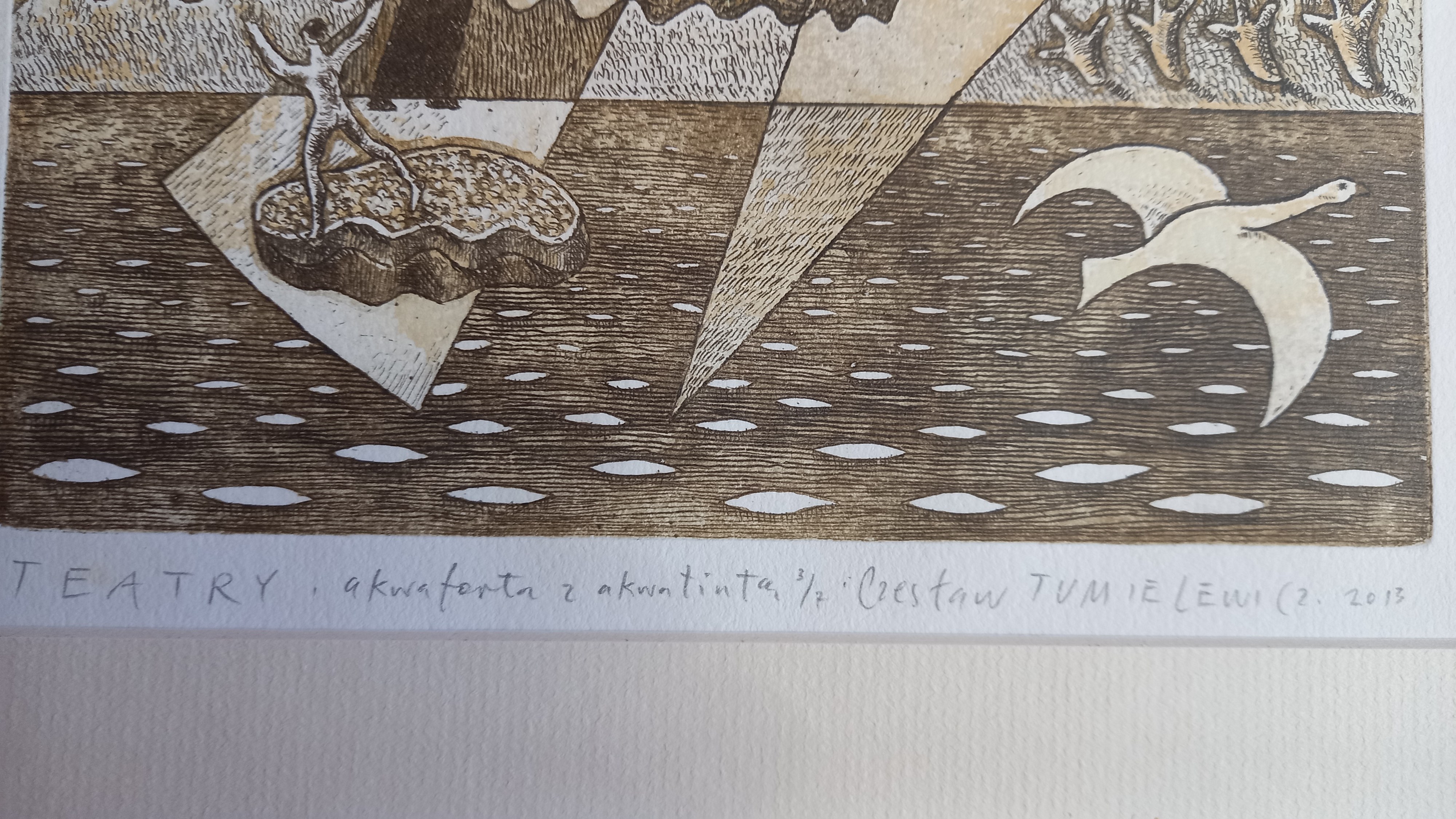 Akwaforta , akwatinta / papier , sygn. i opis autorski ołówkiem u dołu kompozycji , format odbitki 29 X 20 cm.